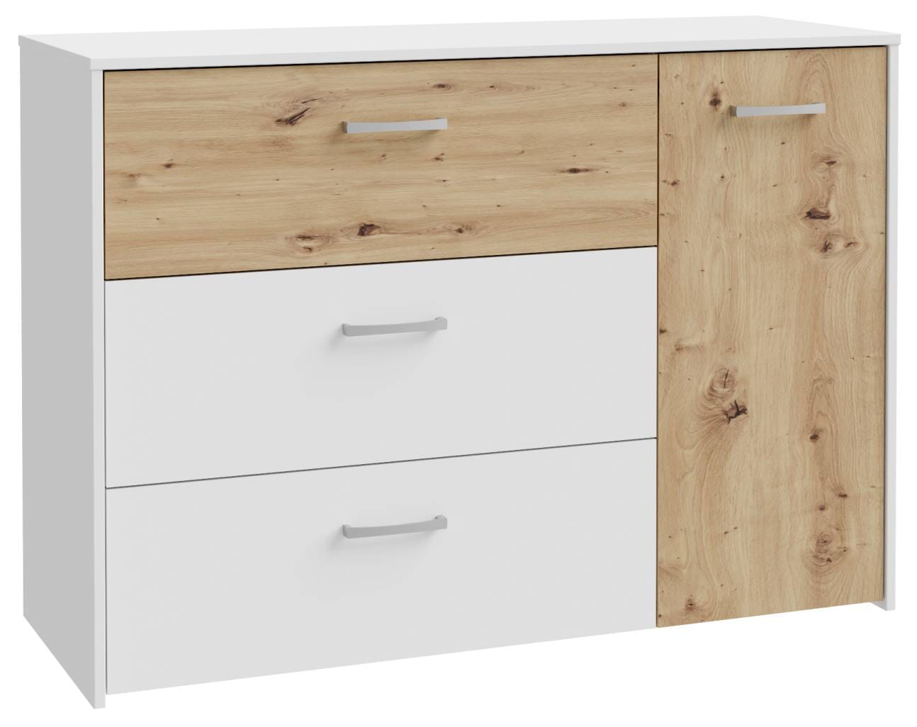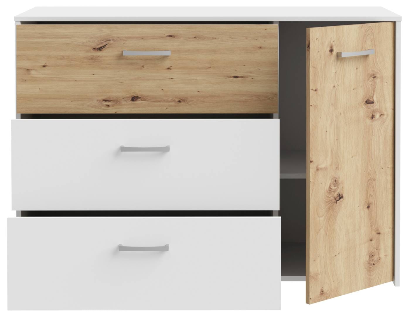 Eine interessante Aufteilung, das harmonische Zusammenspiel aus der Farbe Weiß und Artisan Eiche Dekor: Bei dem Sideboard CULGOA kommt einiges zusammen. Die Farbgebung wirkt grundsätzlich hell und freundlich, und über das Raumangebot werden Sie sich sicher freuen.