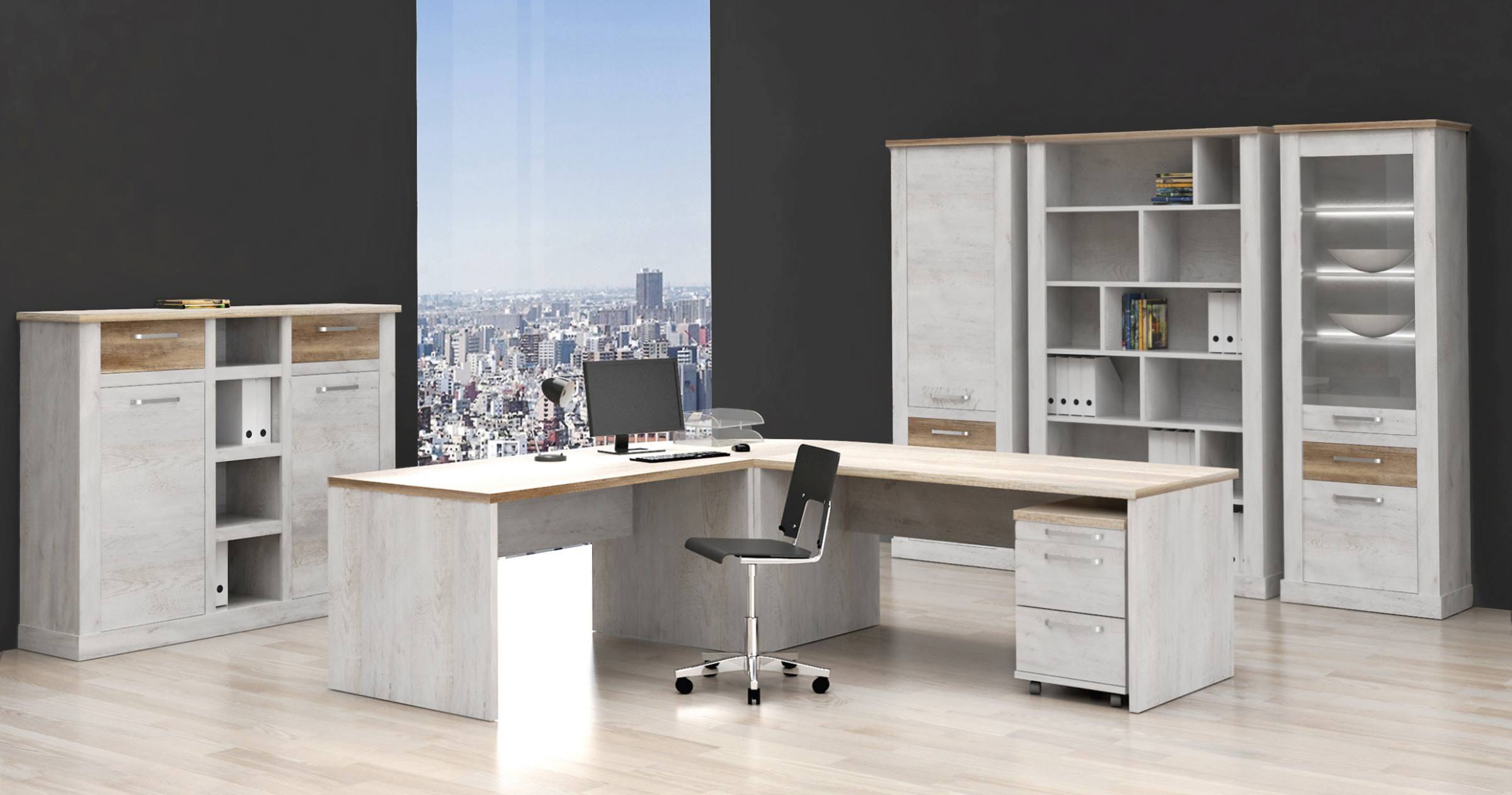 Bücherregal Regal DURO, Optik antik weiß und Eiche antik