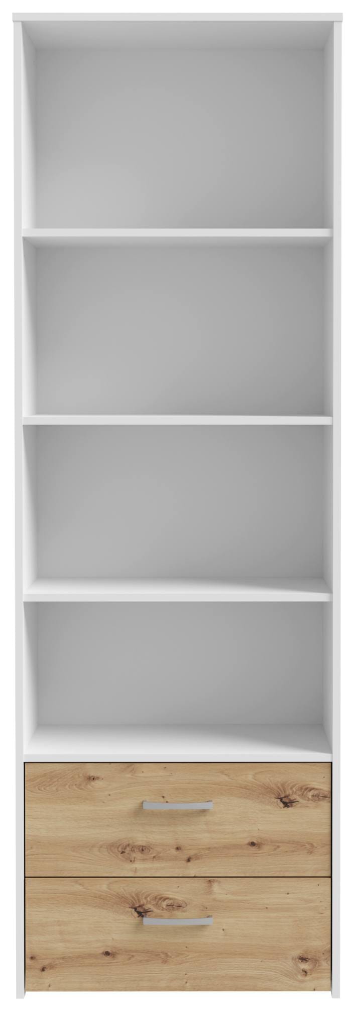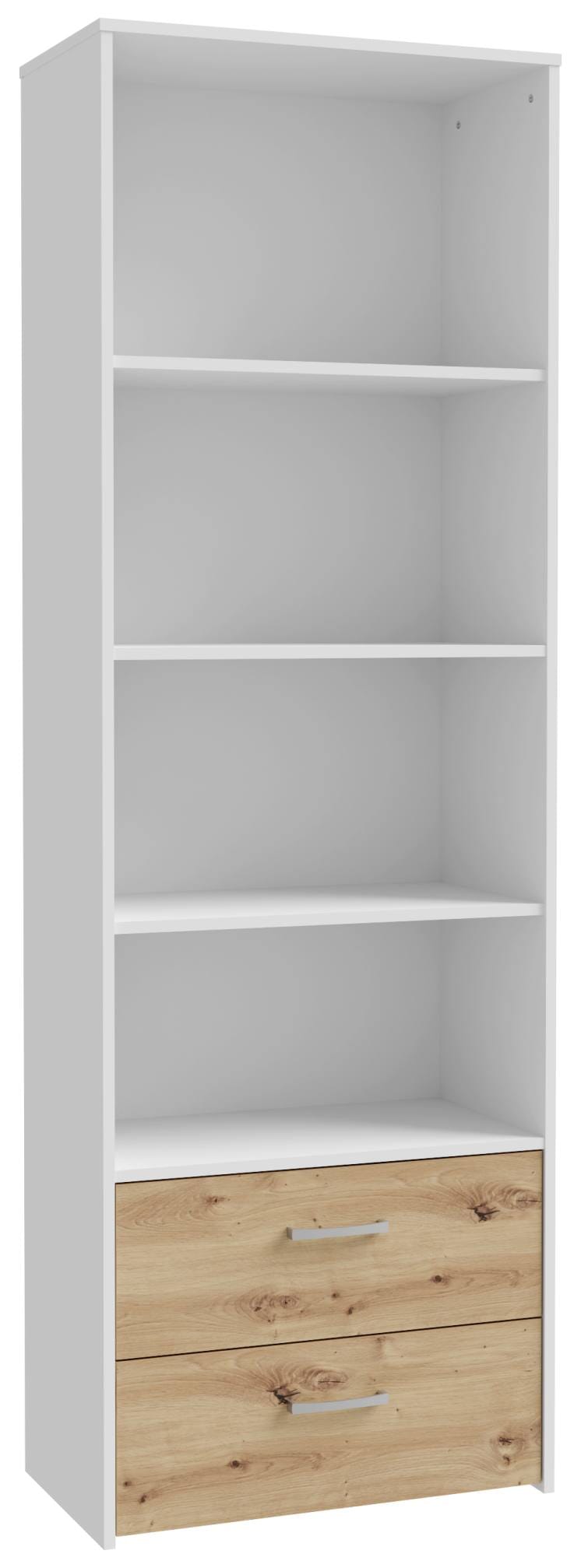 Eine schöne Farbkombination! Das Regal Bücherregal CULGOA bietet überraschende Einblicke und eine interessante Aufteilung, die Ihnen genug Platz für Dekoratives und Nützliches bietet. Dieses hohe Regal besteht aus weiß beschichteter Spanplatte und wurde durch die Kombination mit gefälliger Artisan Eiche zu einem ansehnlichen Möbelstück. Im unteren Teil warten zwei Schubladen auf ihren Einsatz, und in den Fächern darüber können Sie Ihre Bücher, Unterlagen und alles, was Sie erfreut, platzieren.