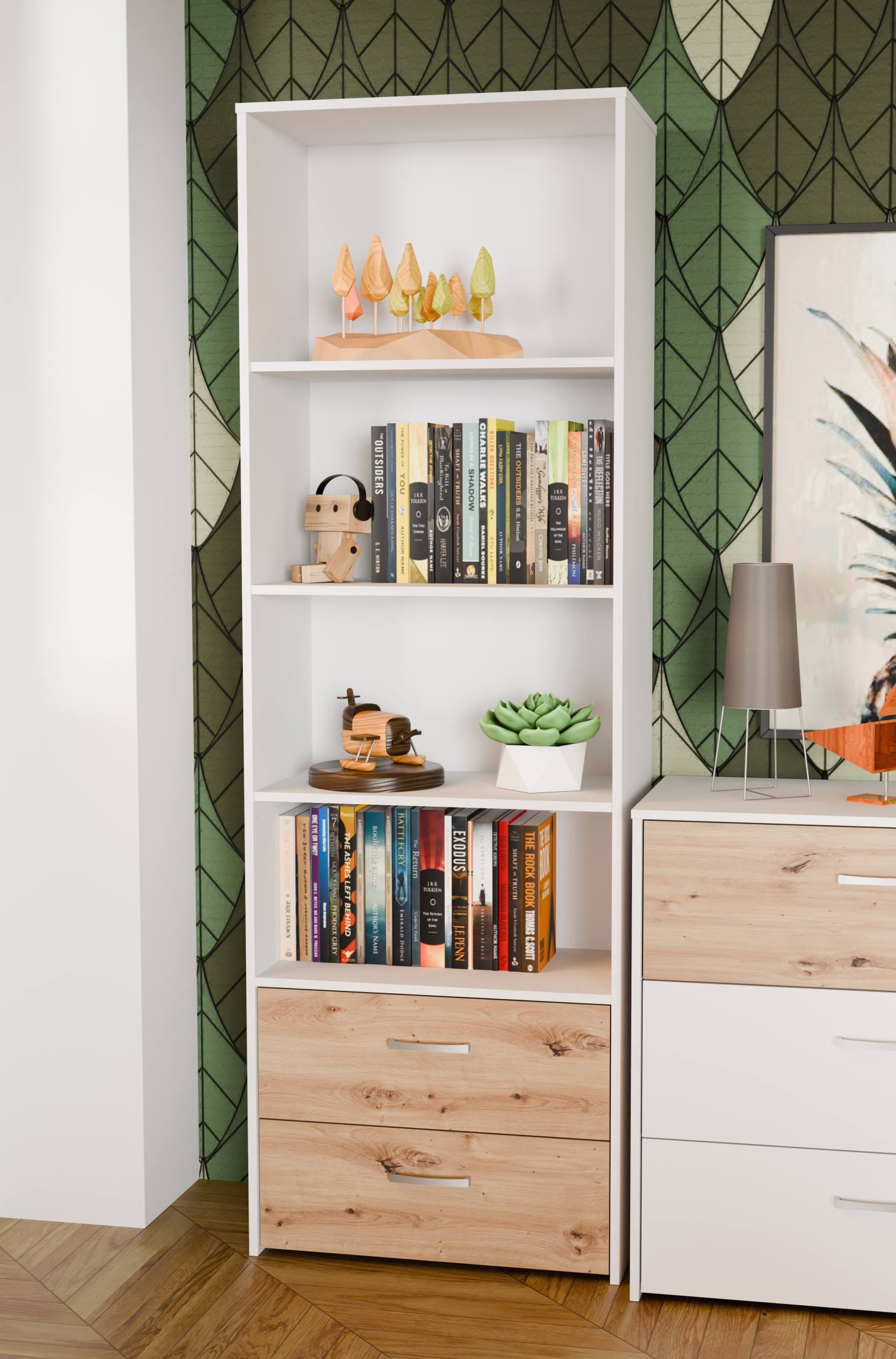 Regal Bücherregal CULGOA mit 2 Schubladen in Weiß mit Artisan Eiche