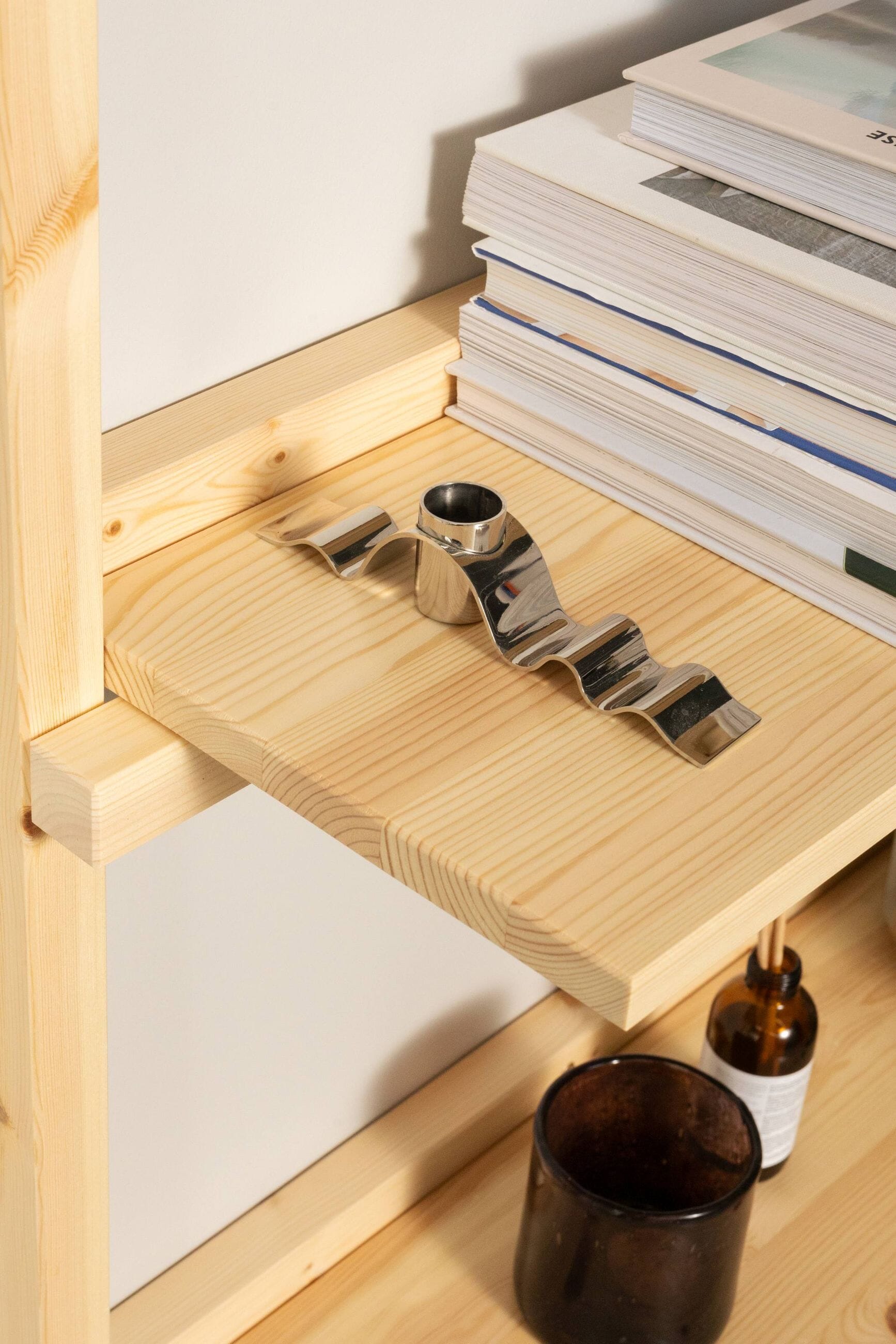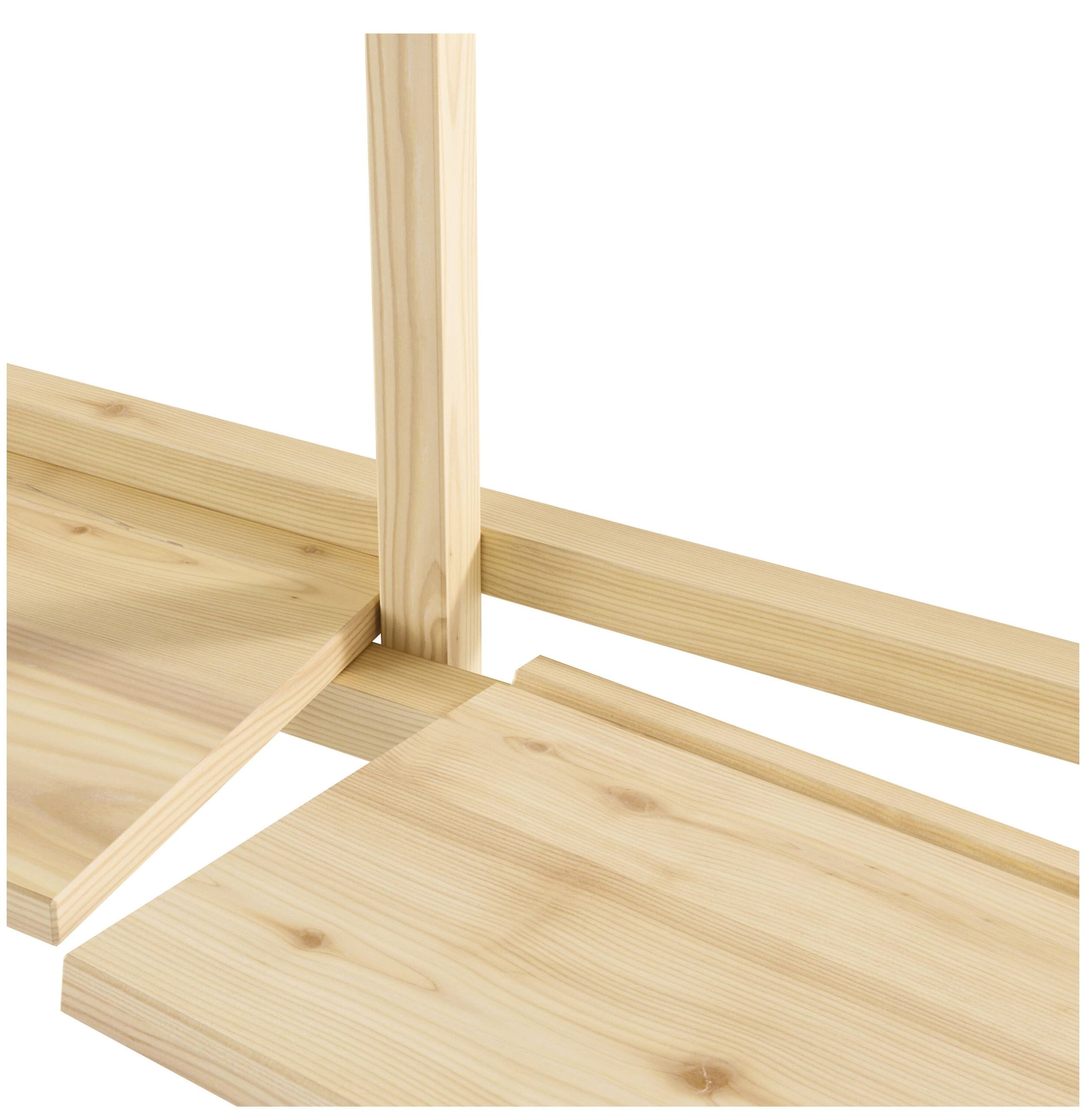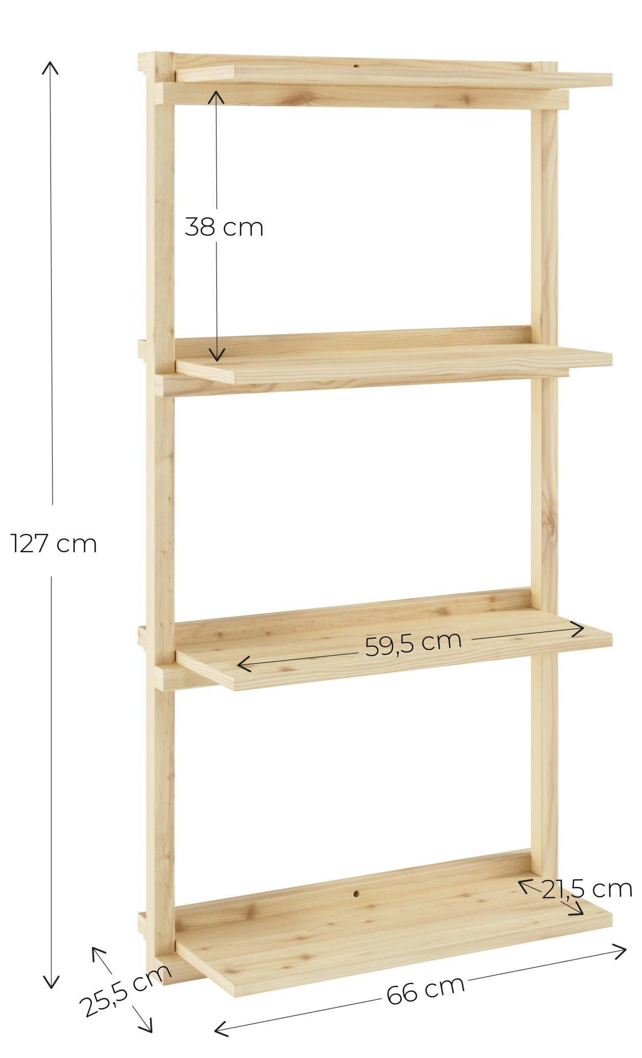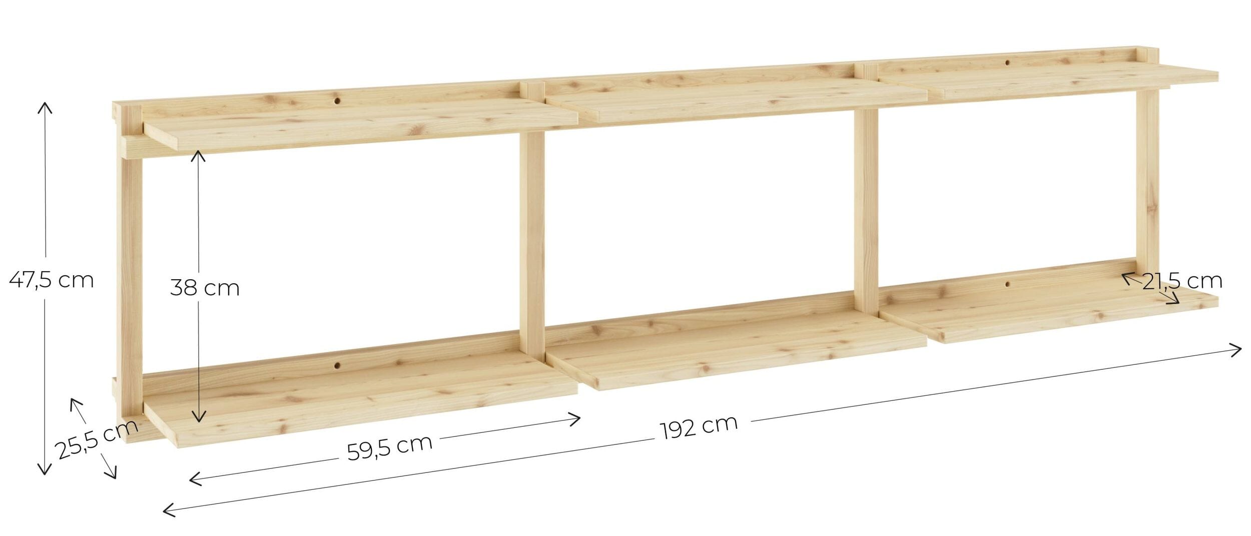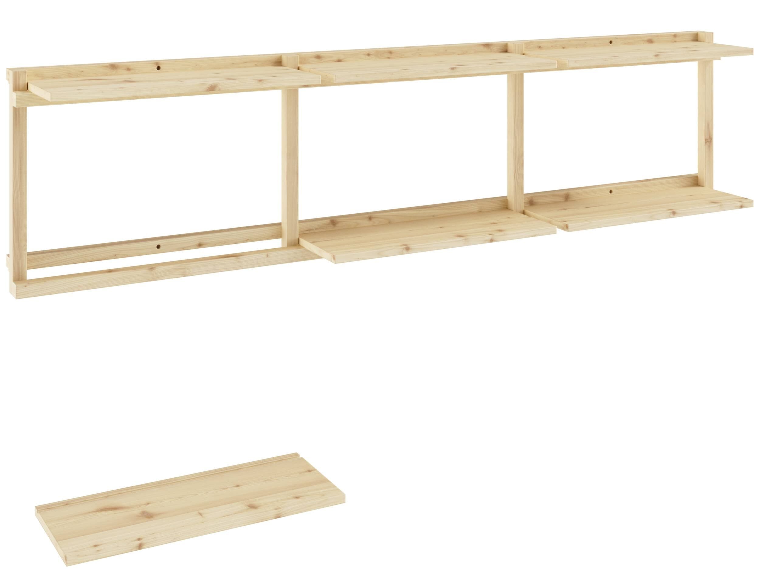Nutze die Holzregale aus massivem Kiefernholz für Bücher, Pflanzen oder Dekorationsgegenstände – und erschaffe eine leichte, dynamische Optik.