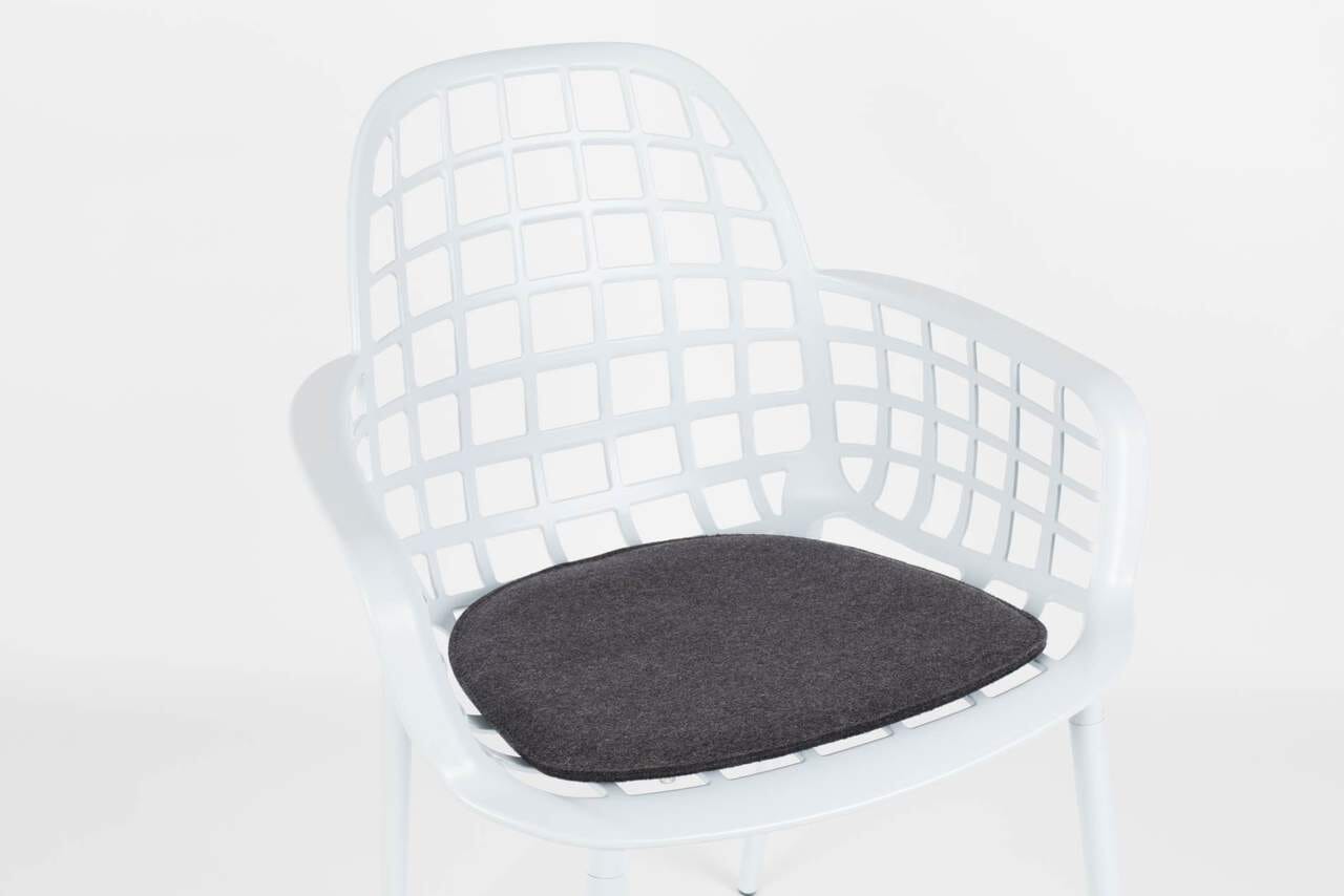 Die Auflagen sind in moderner Filzoptik, auf der Unterseite haben die Auflagen das Zuiver Logo und Anti-Rutsch Noppen.