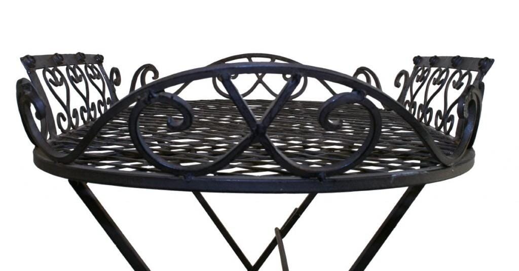 Eisen antik braun lackiert, das ist die stabile Grundlage für dieses fragile Accessoire. Der Antik Look wirkt wie eine Zeitreise, ist aber auch sehr entspannt. Sie erhalten diesen Tisch für alles Schöne schon montiert. Alles, was Sie nun tun müssen, ist ihn aufklappen und ihm eine schöne Ecke geben. Nostalgie pur!