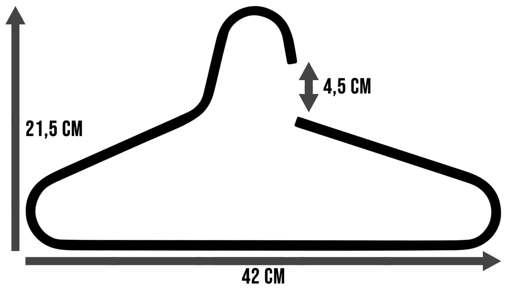 Die Kleiderbügel sind aus stabilem Metall gefertigt und haben pulverbeschichtete Oberflächen. Durch die große Hakenöffnung sind die Kleiderbügel für Kleiderstangen mit größeren Durchmessern sehr gut geeignet.