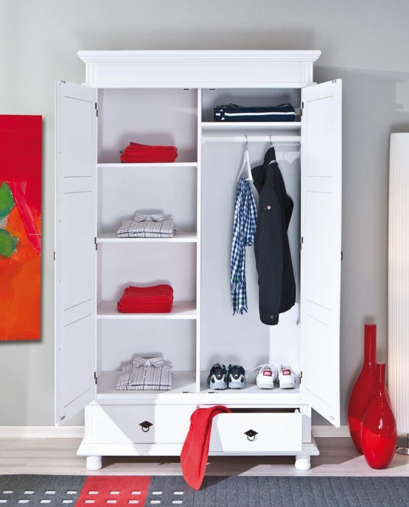 Kleiderschrank DANZ 2, Kiefer Massivholz weiß lackiert