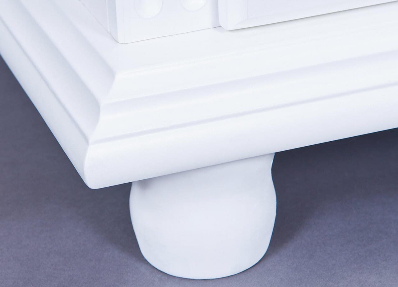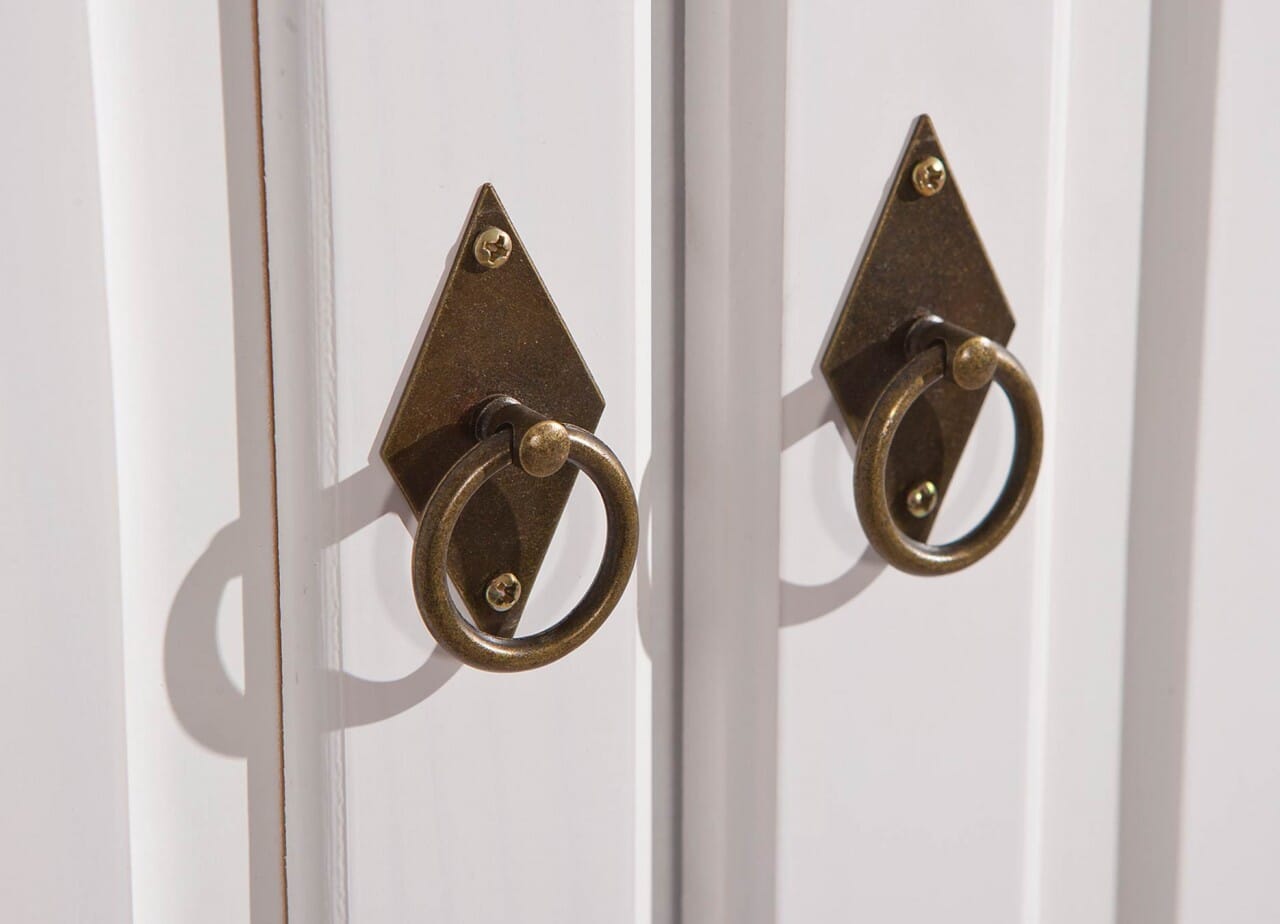 Aller schlichten Attribute zum Trotz: Seine Detailverliebtheit offenbart DANZ auf den zweiten Blick. Runde, gedrechselte Füße im geduckten Säulendesign, gefräste Türfüllungen sowie stilvolle Metallbeschläge, verleihen dem Kleiderschrank eine leichte Note.