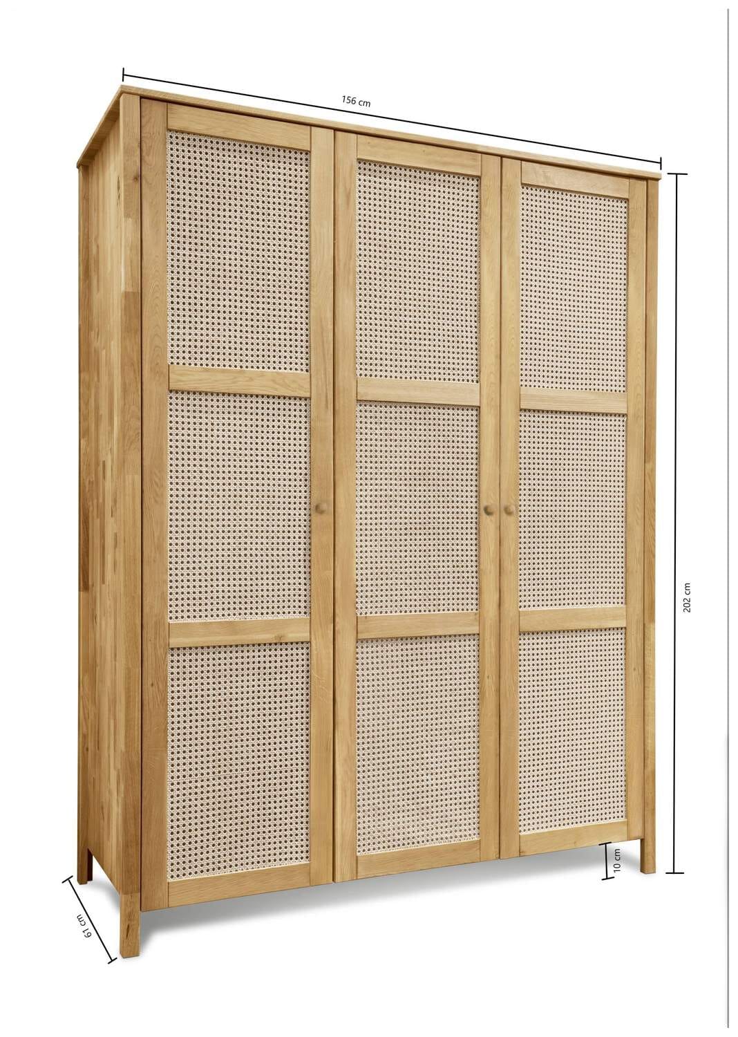 Kleiderschrank FRIA 3 Türen Wildeiche geölt mit Wiener Geflecht