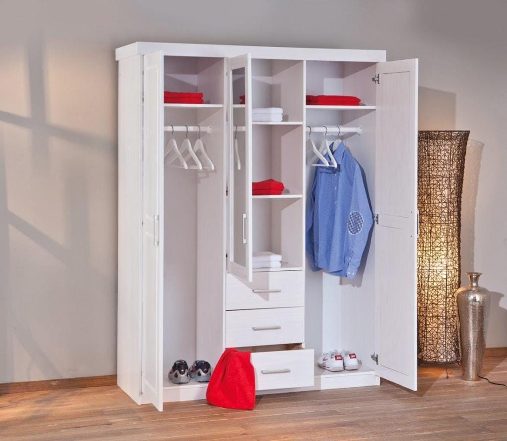 Kleiderschrank GERALDO Kiefer Massivholz weiß lackiert 3-türig