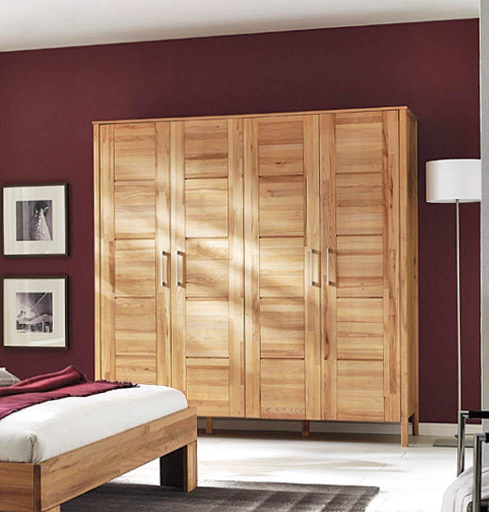 Kleiderschrank HALVAR, 4 Türen mit Kassettenfront, Rotkernbuche massiv