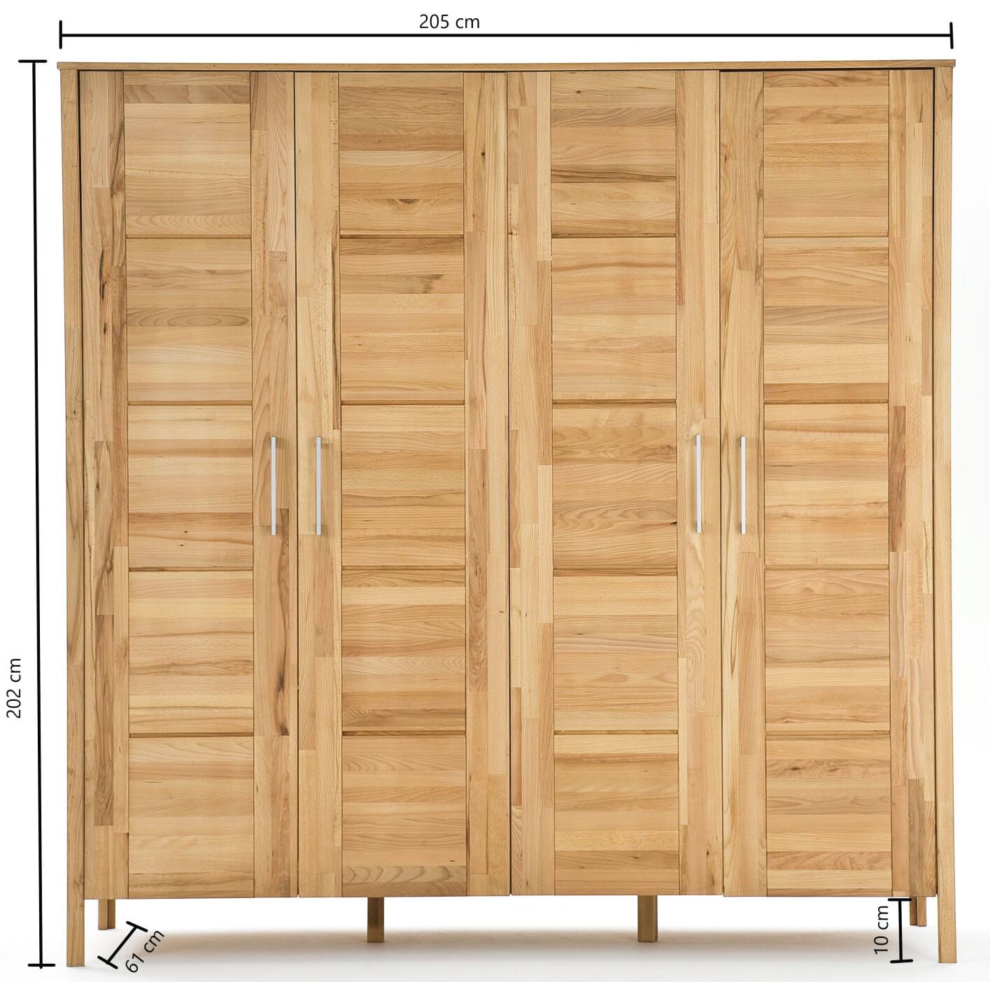 Kleiderschrank HALVAR 4 Türen Kernbuche geölt mit Kassettenfront