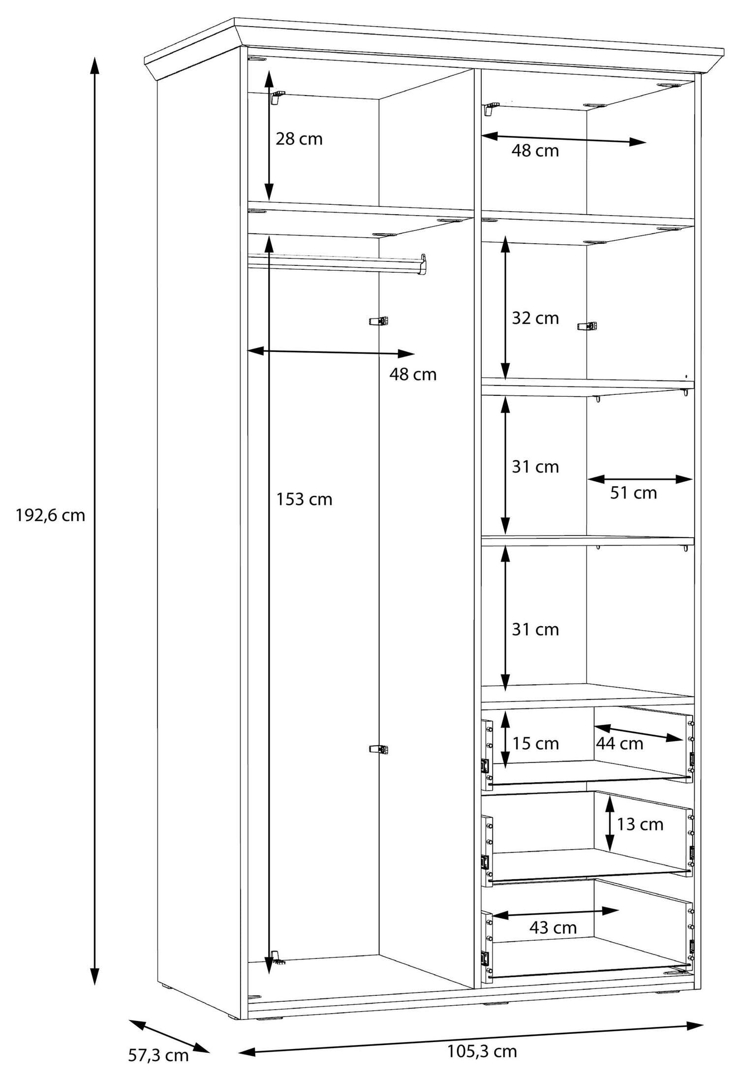 - Maße: B/H/T 105,3 x 192,6 x 57,3 cm