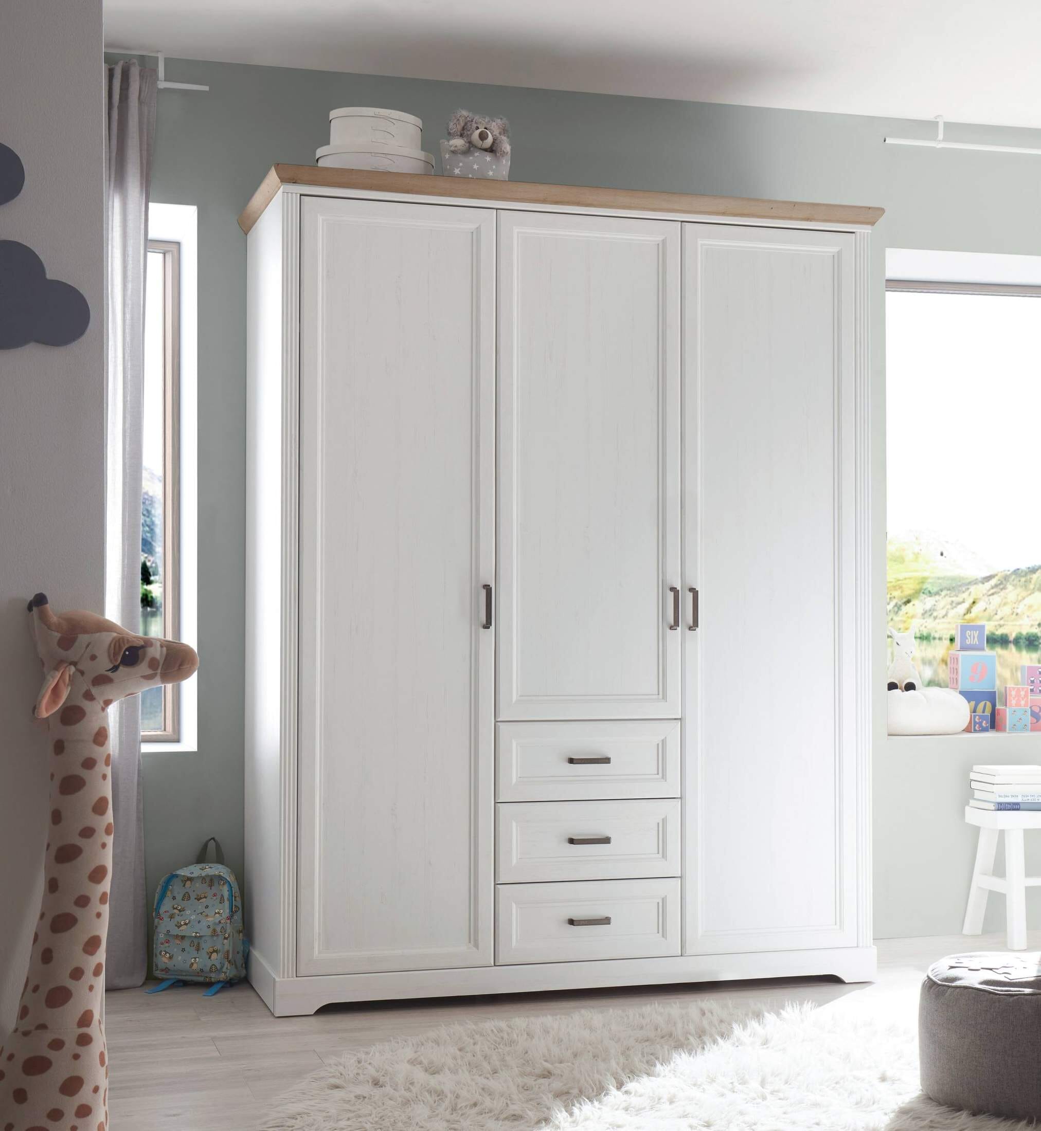 Kleiderschrank JASMIN 3-trg. 3 Schubladen Pinie weiß Nachbildung