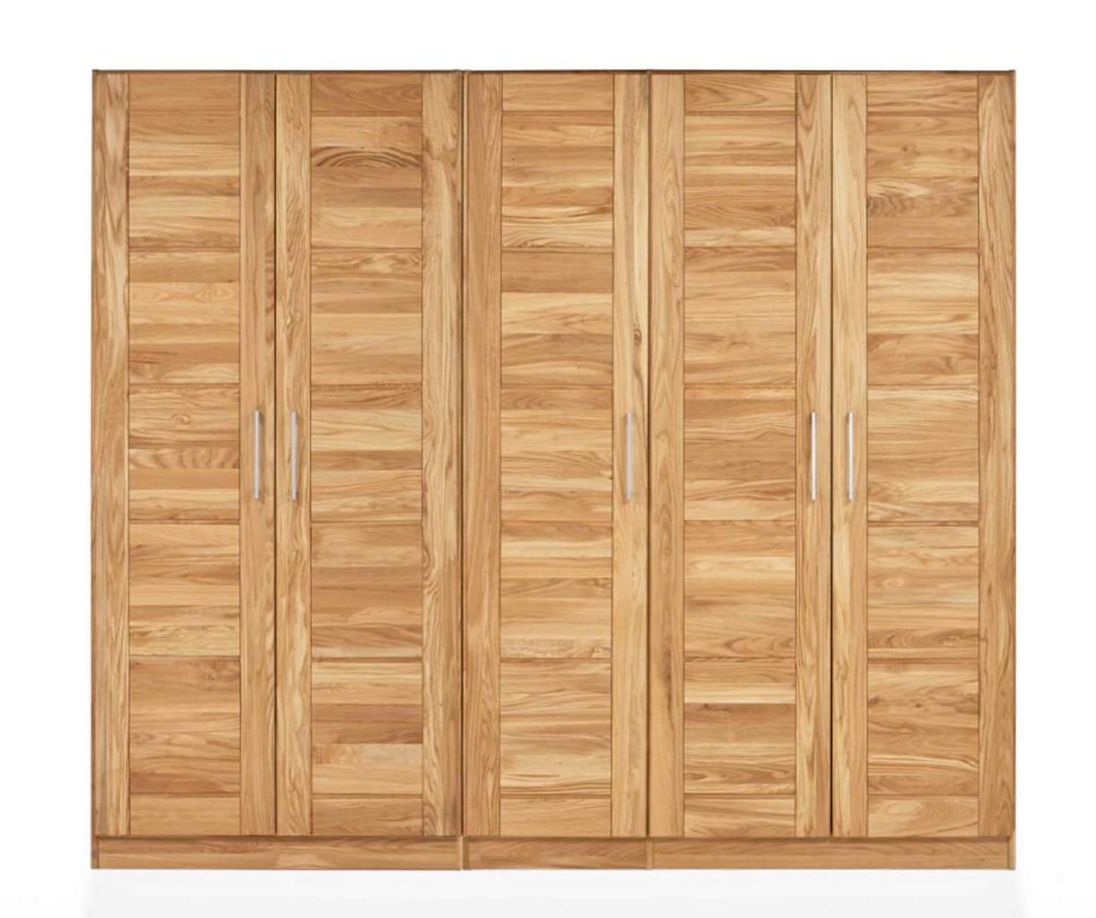 Kleiderschrank NAYA, 5 Türen mit Kassettenfront, Wildeiche massiv