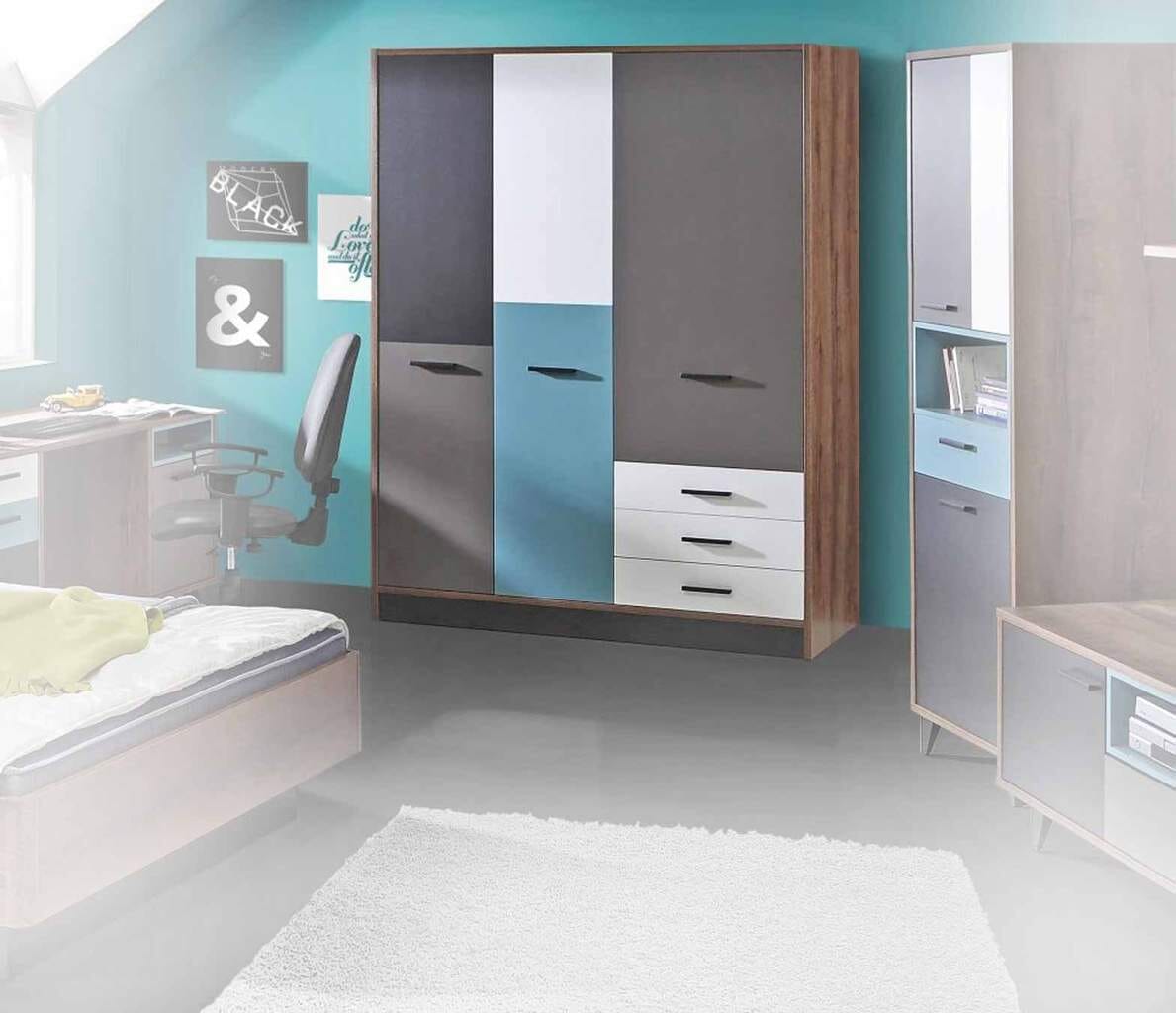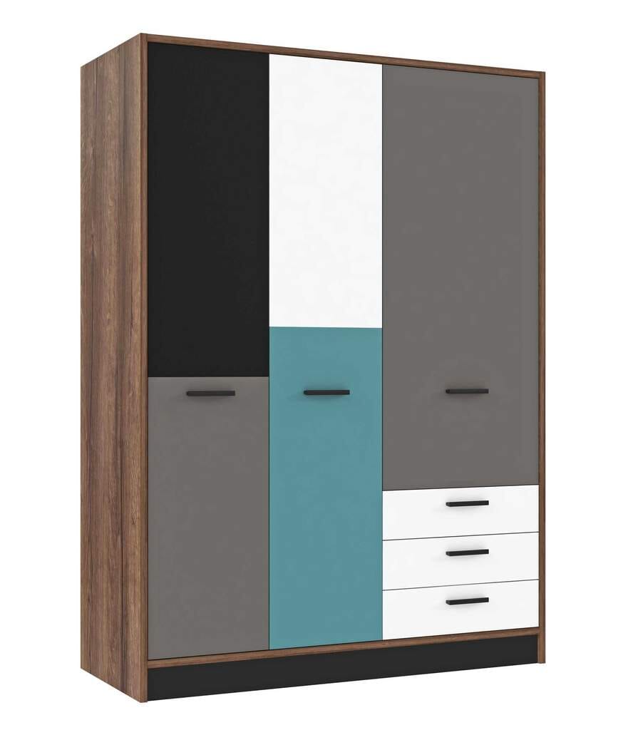 Kleiderschrank RAVEN, 3-trg. und 3 Schubkästen, Optik Schlammeiche mit Weiß Grün Grau