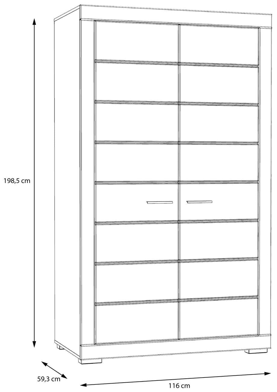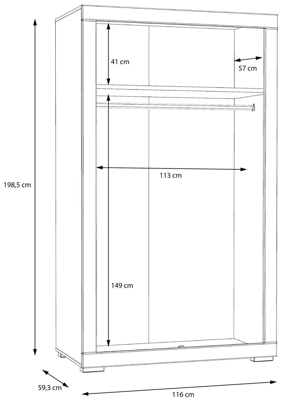 - Maße: B/H/T 116 x 198,5 x 59,3 cm