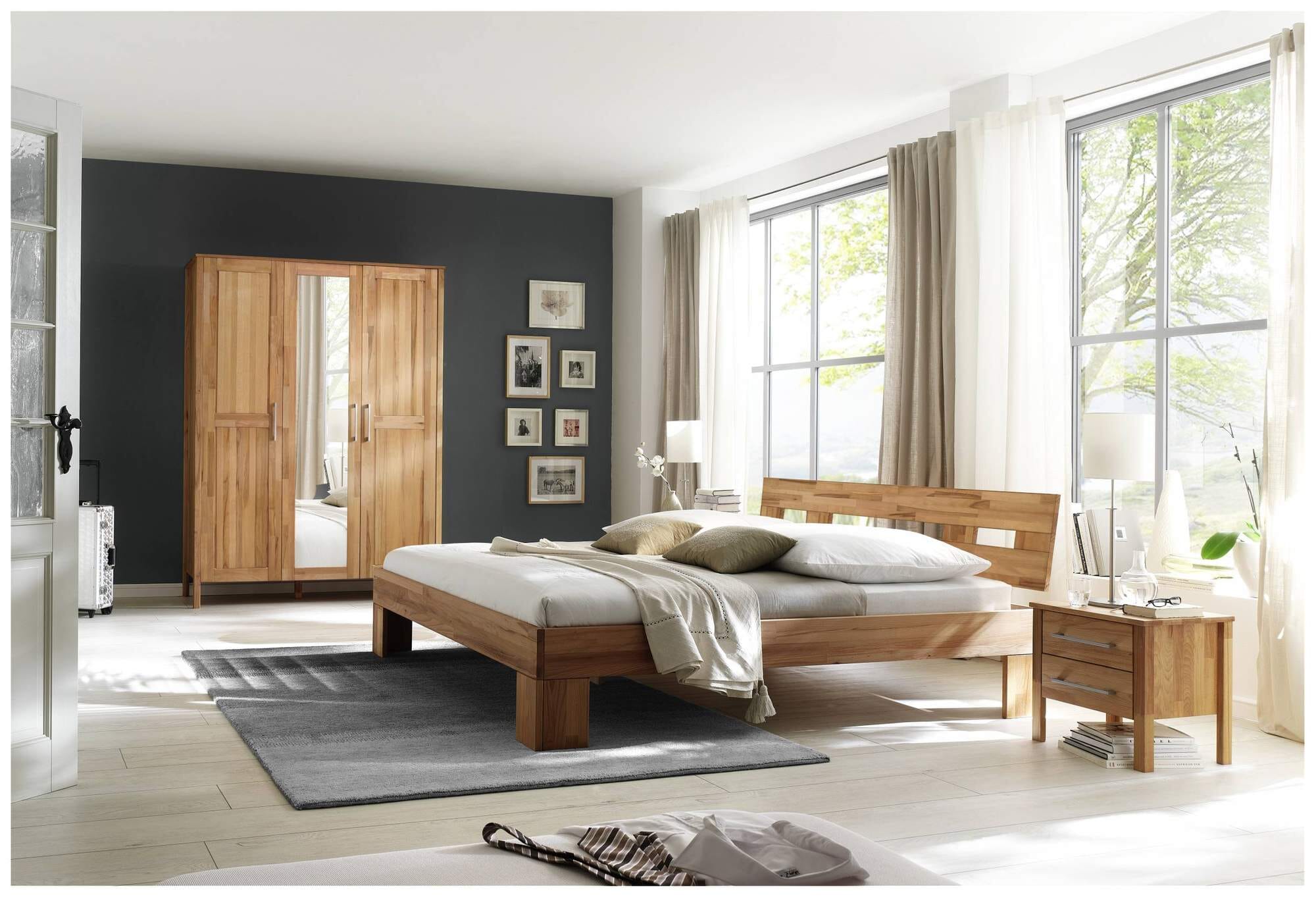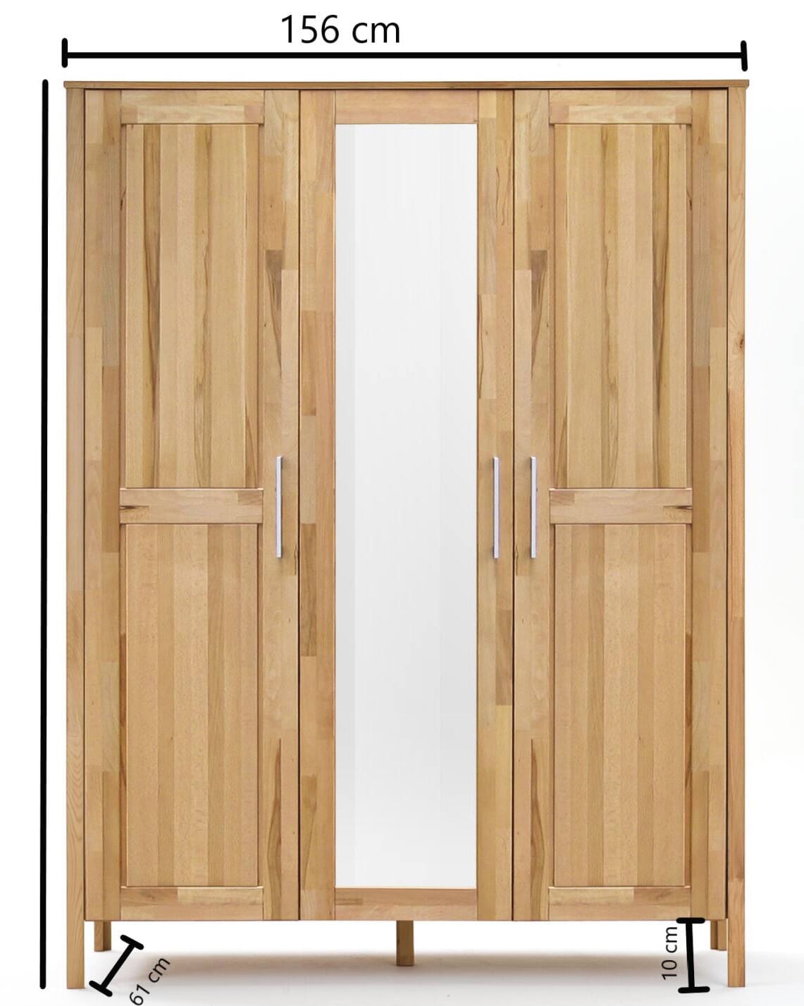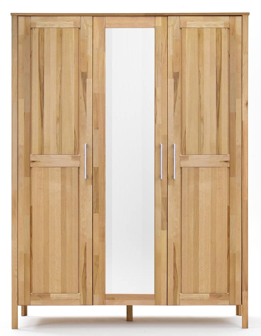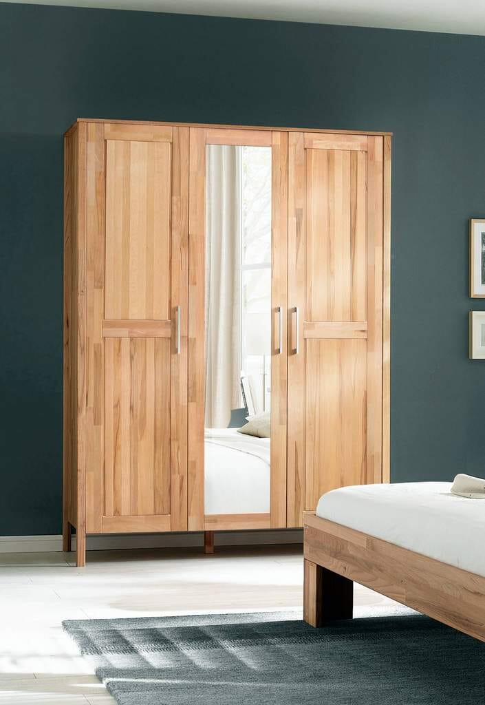 Kleiderschrank YLVA 3 Türen mit Spiegel Kernbuche massiv geölt