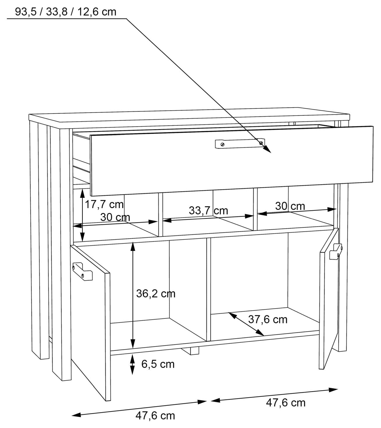 - 1 Schublade, Innenmaß B/H/T ca. 935x12,6x33,8 cm