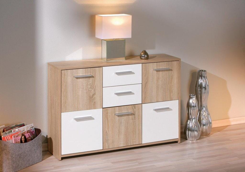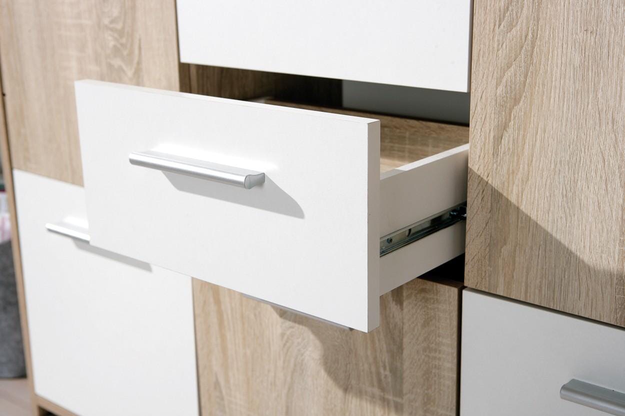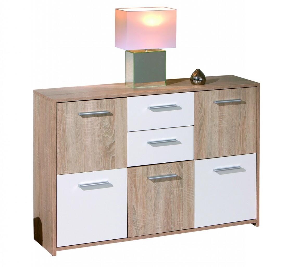 Kommode ELVEZIA 5 Türen 2 Schubladen Sonoma Eiche / Weiß beschichtet