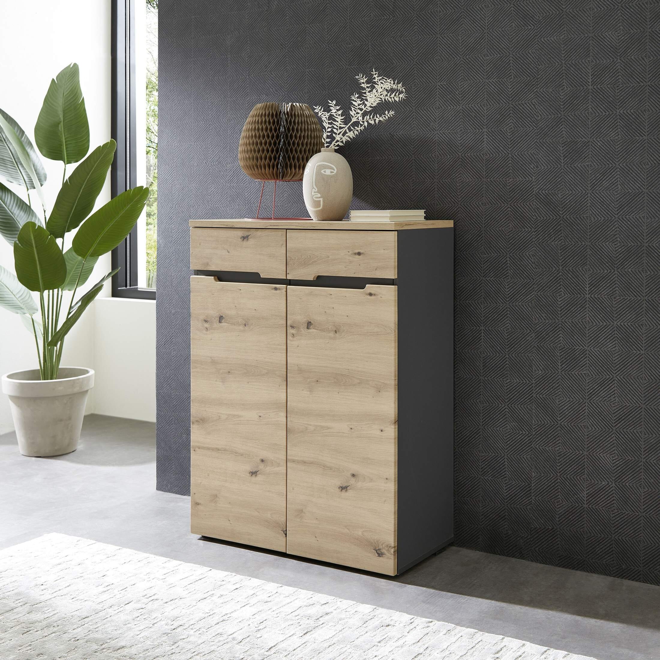 Die 2-türige Kommode MEMPHIS mit Fronten in Artisan Eiche Nachbildung und Korpus in Graphit ist ein absolutes Highlight für Ihre Garderobe, die Farbgebung wirkt modern und natürlich zugleich.