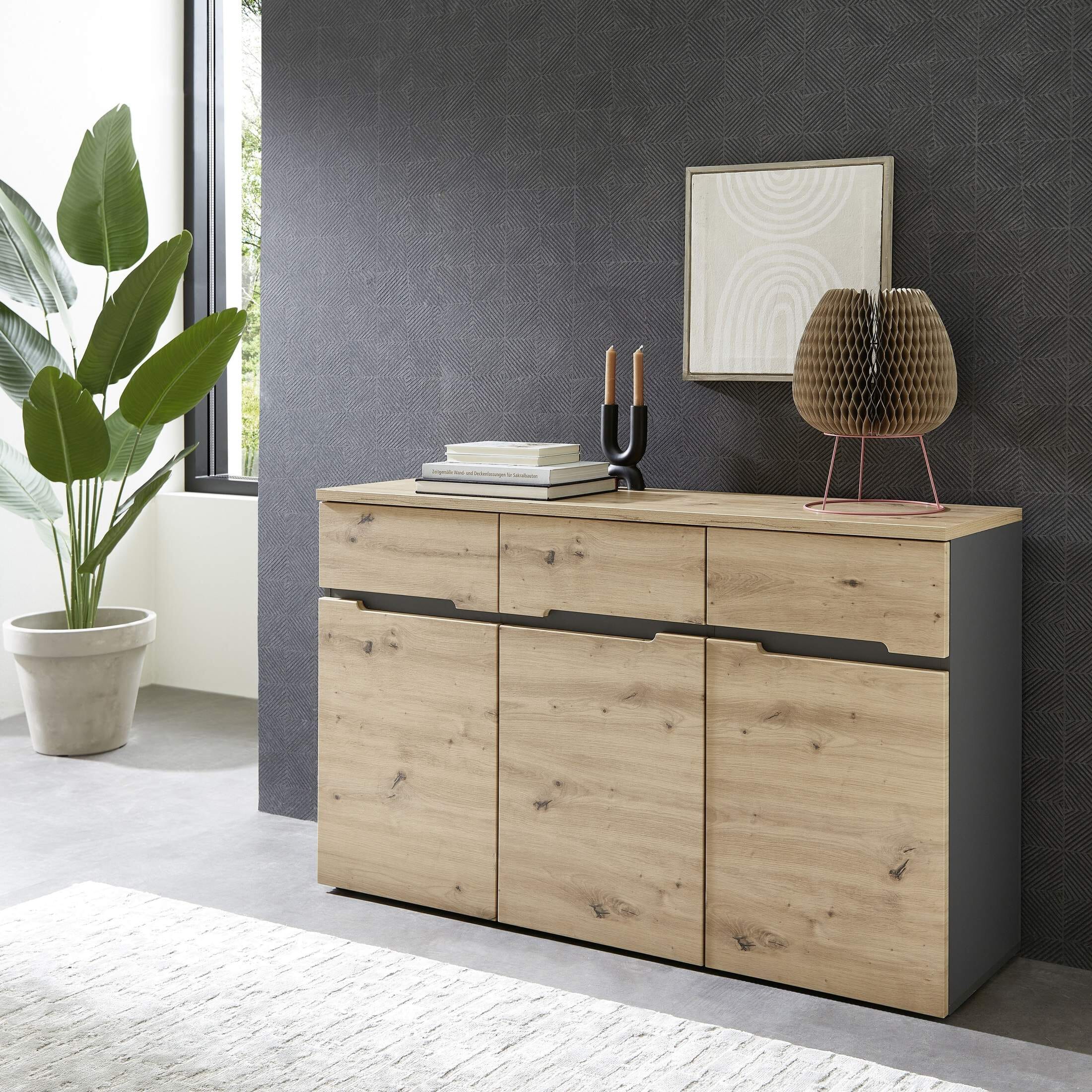 Die 3-türige Kommode MEMPHIS mit Fronten in Artisan Eiche Nachbildung und Korpus in Graphit ist ein absolutes Highlight für Ihre Garderobe, die Farbgebung wirkt modern und natürlich zugleich.