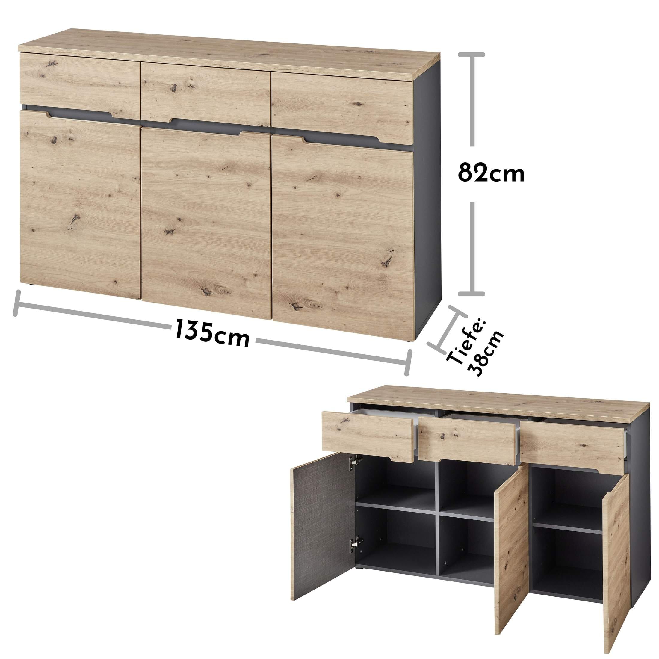 Kommode MEMPHIS GH26 3-türig Artisan Eiche Graphit Nachbildung