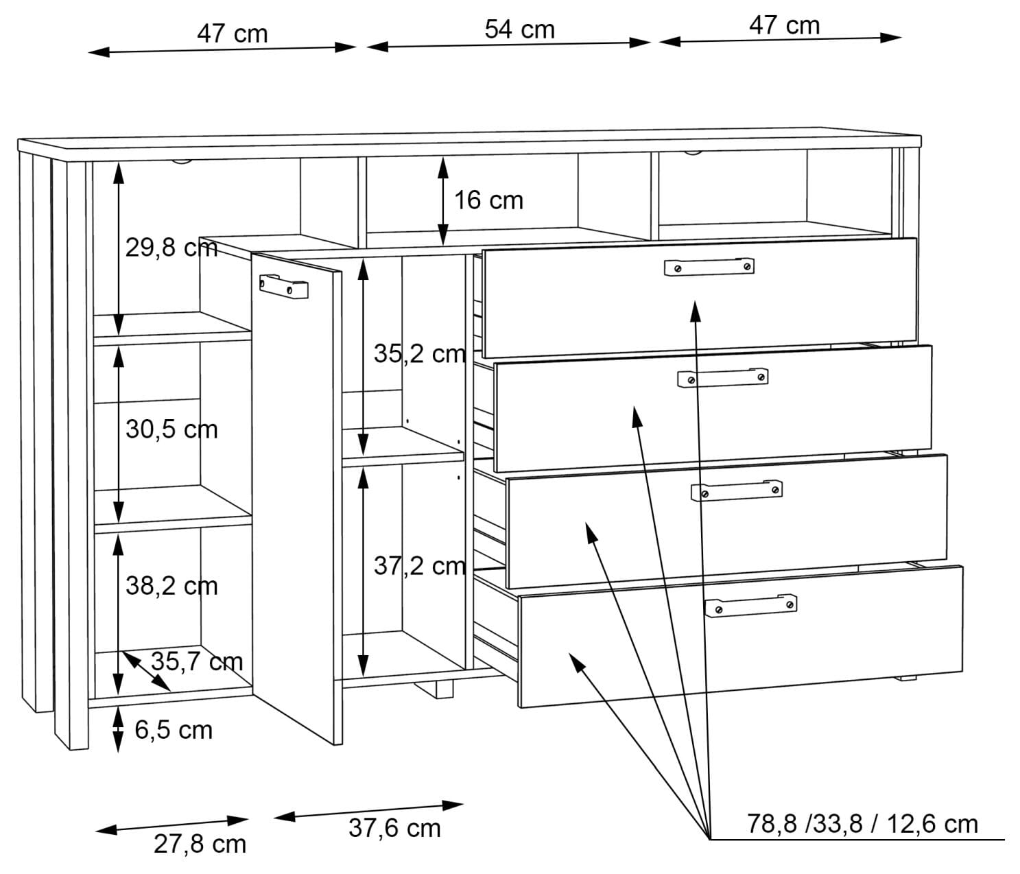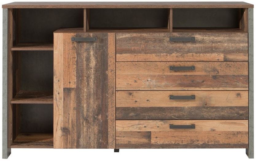 Kommode Sideboard CLIF 1 Tür 4 Schubladen Old Wood Optik, von Forte