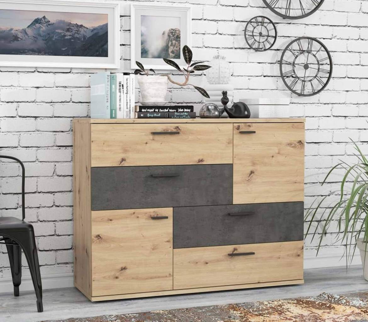 Kommode Sideboard SKIVE Optik: Artisan Eiche / Betonoptik dunkelgrau