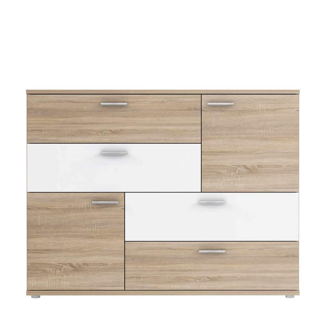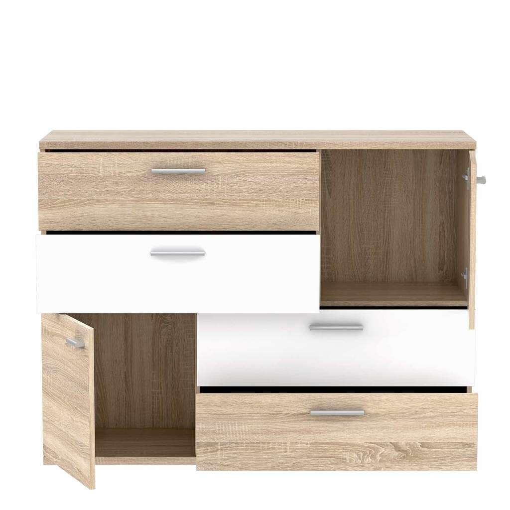 Kommode SKIVE 2-trg. 4 Schubladen Optik: Sonoma Eiche / Weiß von Forte