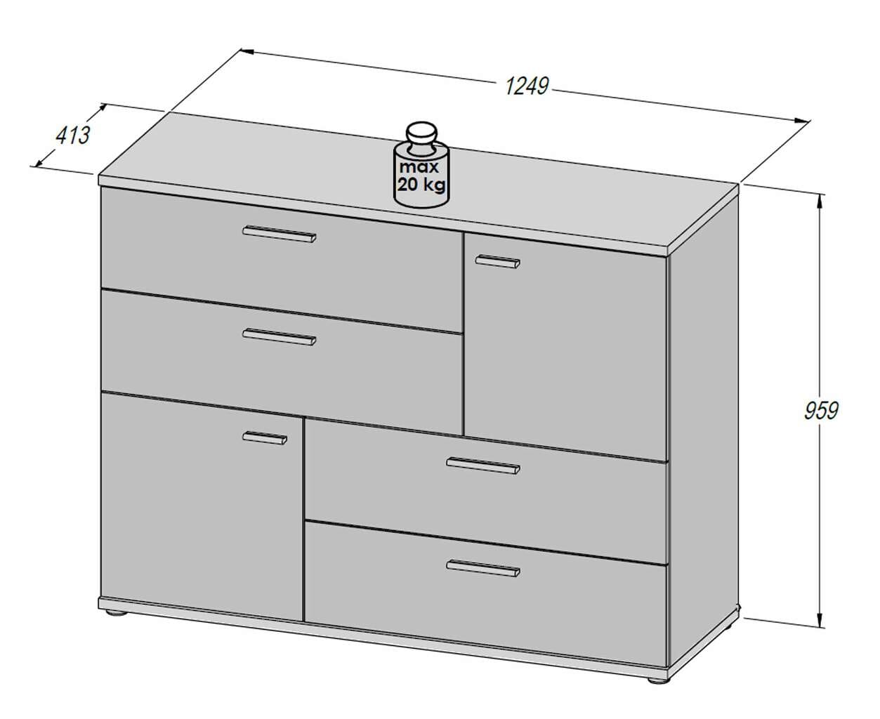 - Maße: B/H/T 124,9 x 95,9 x 41,3 cm