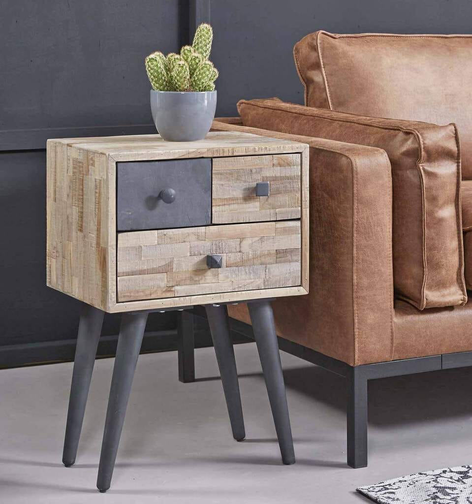 Kommode TECA 3 Schubladen Teakholz massiv verwitterte Optik