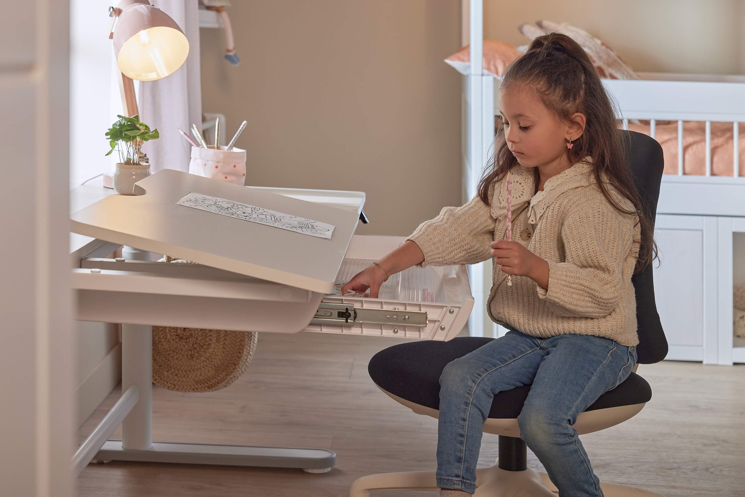 - Extra Sicherheit: Die neigbare Oberfläche hat nach innen einen zusätzlichen Sicherheitsabstand zu der feststehenden Schreibtischplatte, um das Einklemmen von Kinderhänden beim herablassen zu vermeiden.