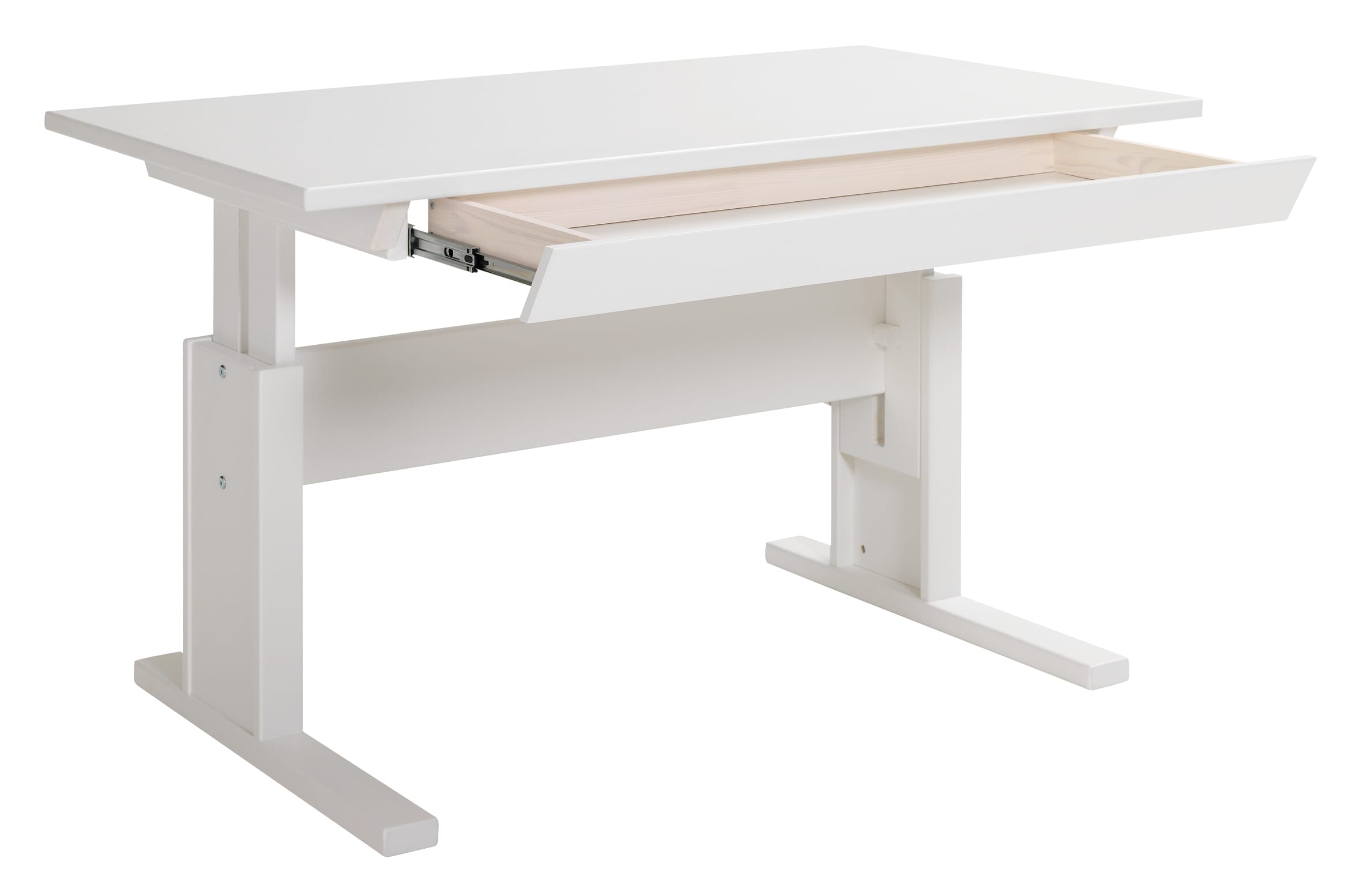 LIFETIME Massivholz Kinderschreibtisch aus Kiefer weiß lackiert - Höhe verstellbar