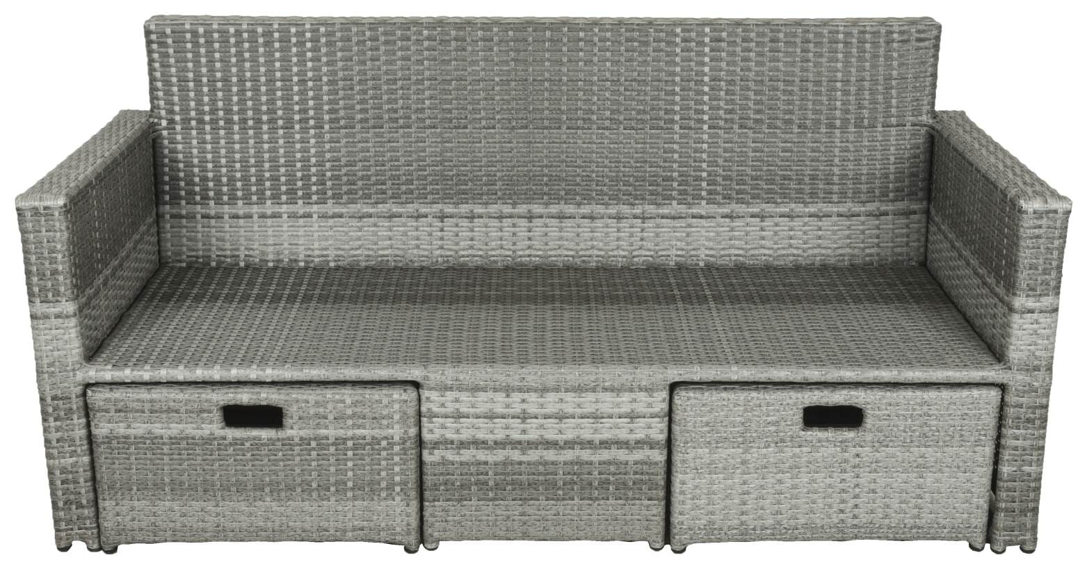 Gartensofa MALTA Polyrattan mit ausziehbaren Fußhocker und Polster