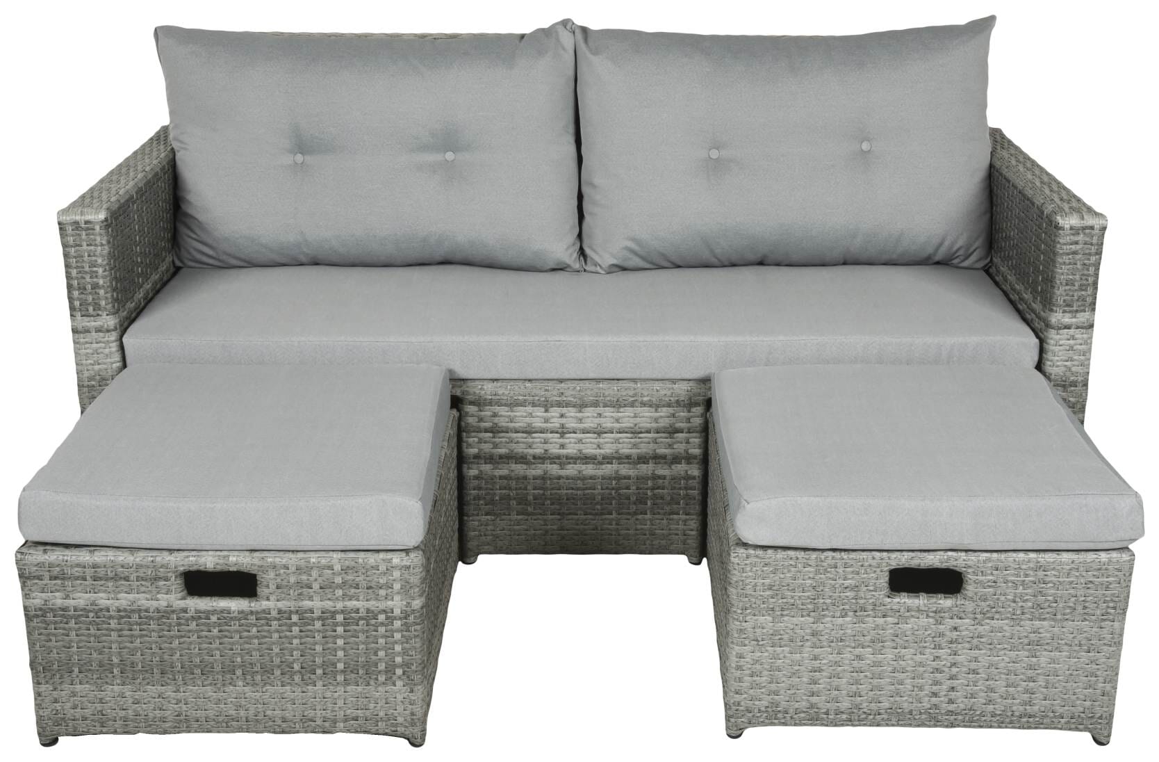 Cooles Gartensofa MALTA inkl. Kissen und Fußhocker Polyrattan Grau