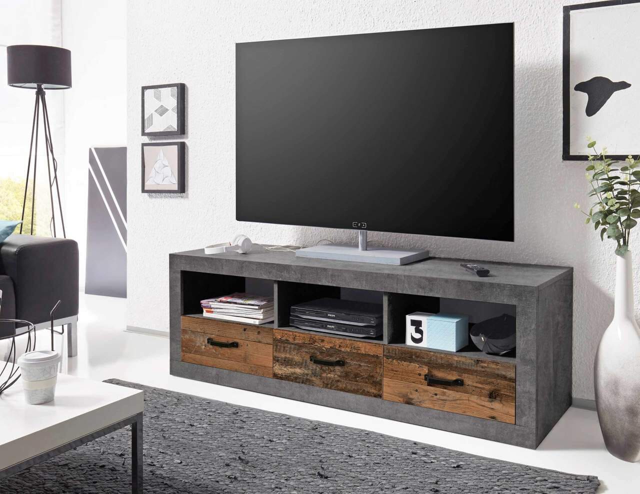 Lowboard INDIANA, mit 3 Schubladen Old Wood Optik und Beton