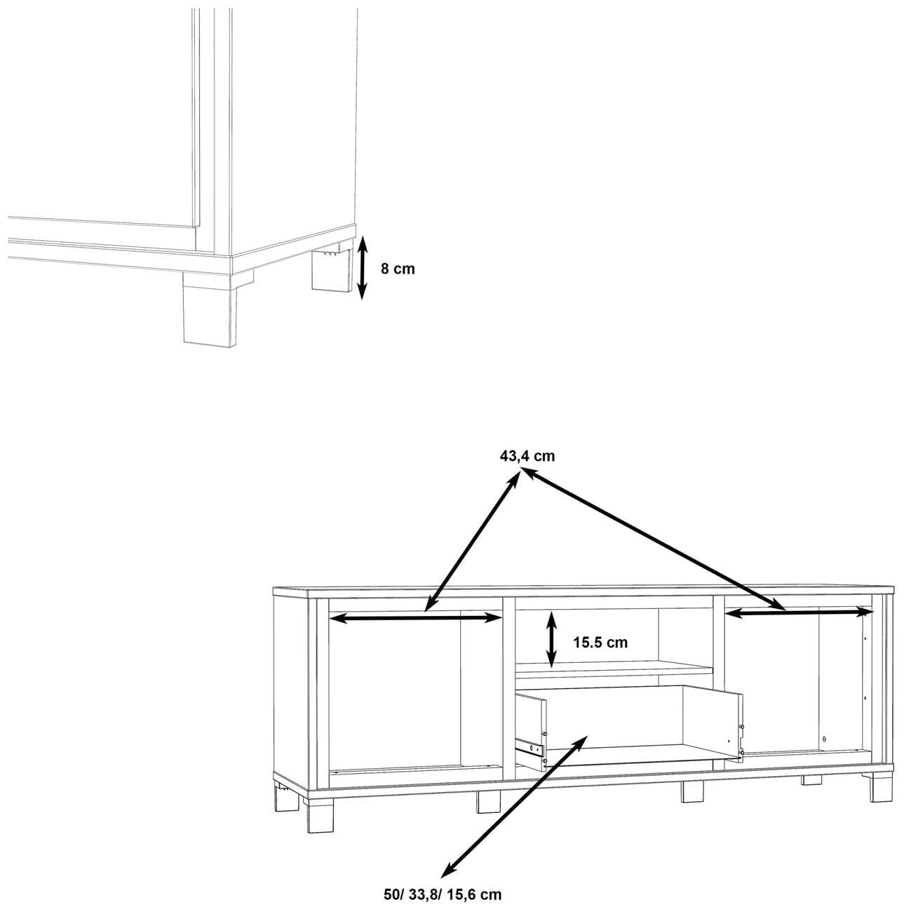 Für das Verstauen der Fernbedienungen und weitere elektronische Geräte bieten sich die Ablagen des Lowboards an. Was nicht jeden Tag benötigt wird, kommt einfach in die Schublade oder hinter eine der beiden Türen. Bei Bedarf kombinieren Sie das Modell mit weiteren Einrichtungsgegenständen der Serie Trondheim. Wir liefern das Modell in zerlegtem Zustand an eine Adresse Ihrer Wahl. Zum Lieferumfang gehört eine Aufbauanleitung.