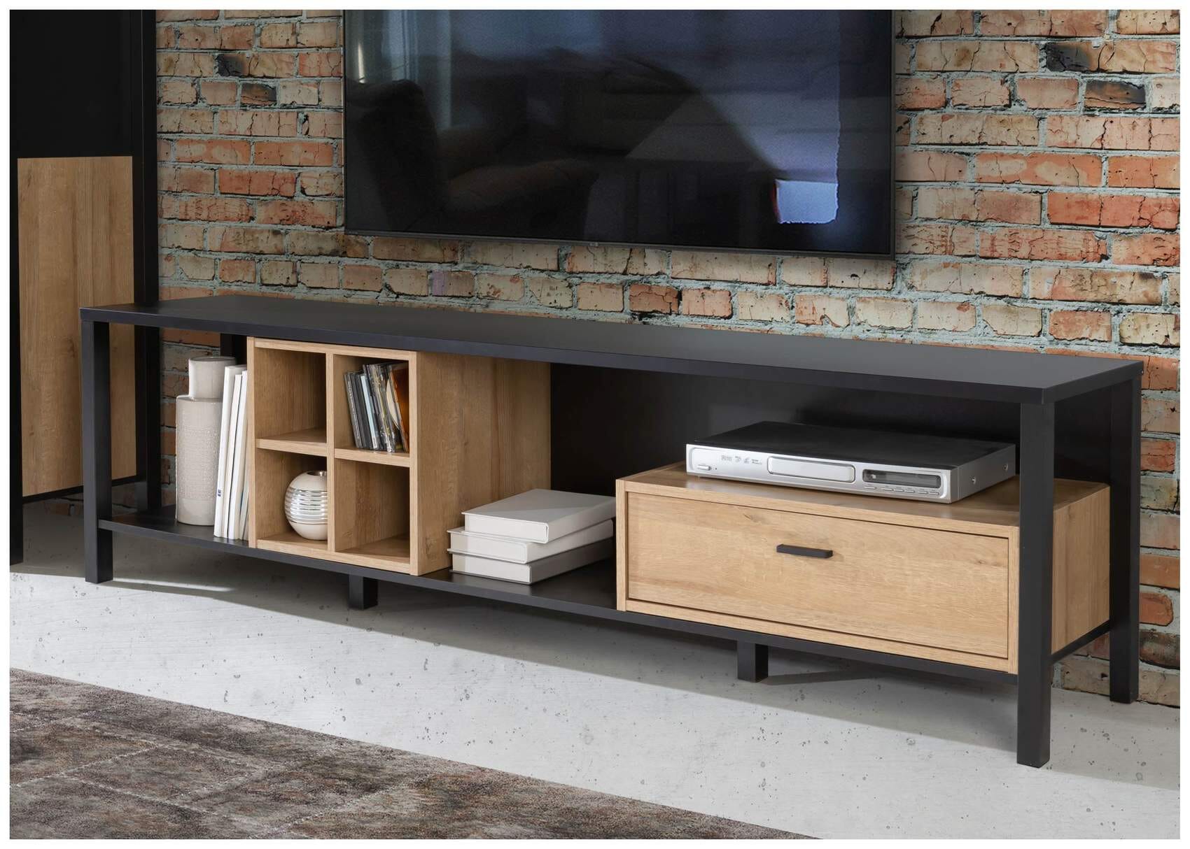 Lowboard TV-Board HIGH ROCK 141 in Riviera Eiche Optik /Schwarz, Forte