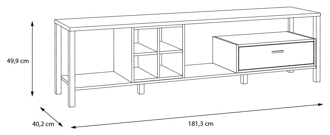- Maße: B/H/T 181,3 x 49,9 x 40,2 cm