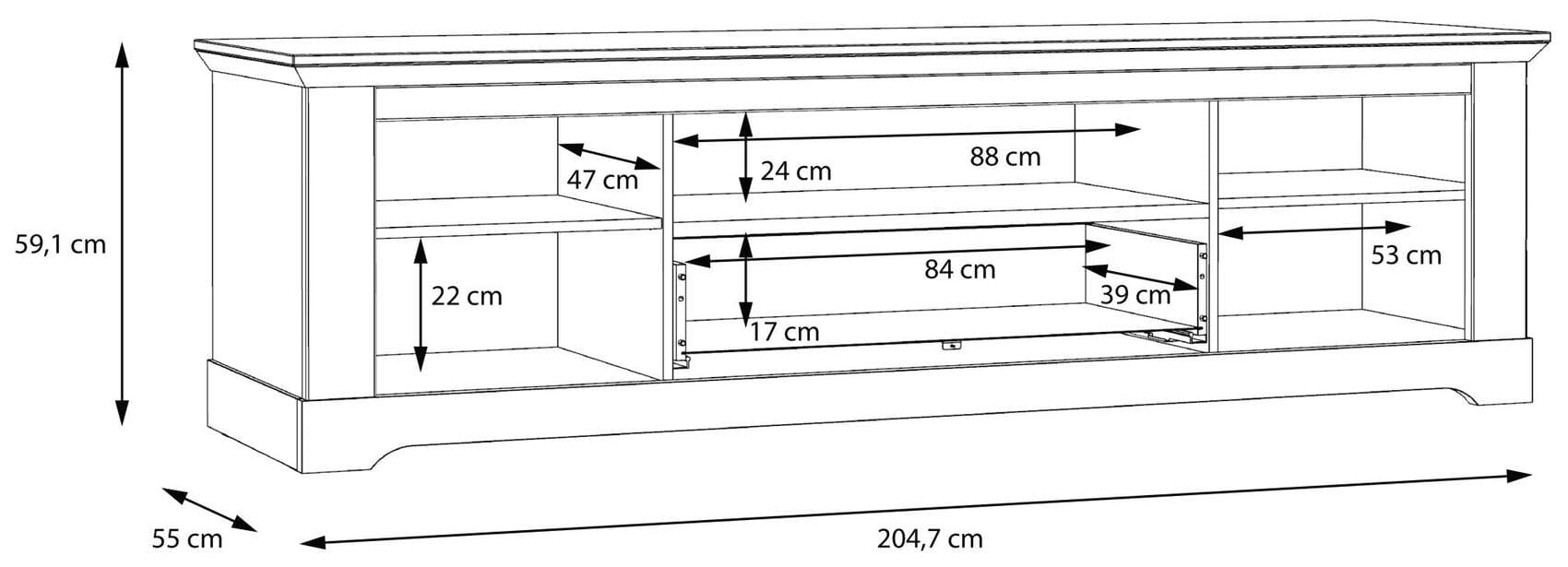 - Maße: B/H/T 204,7 x 54 x 55 cm