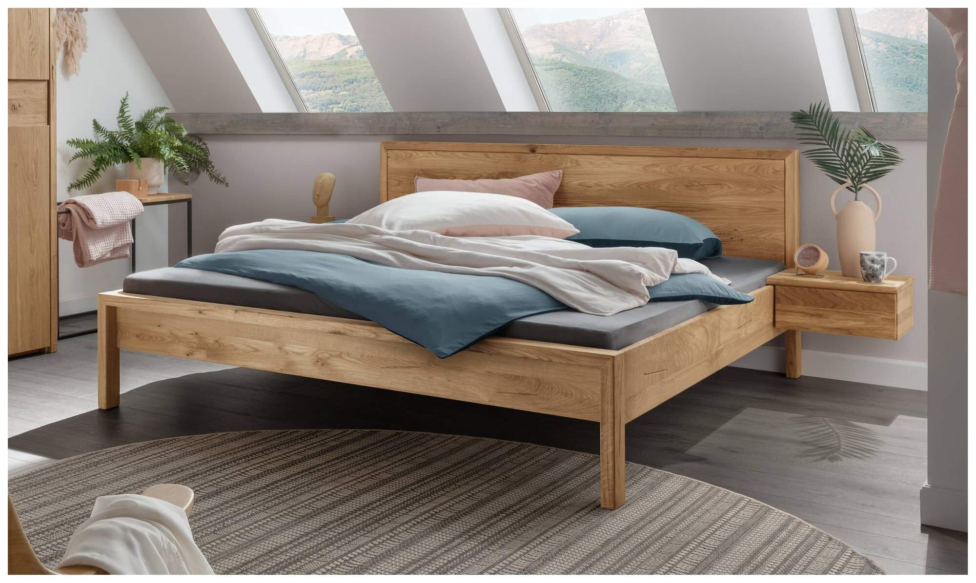 Mit dem Massivholzbett AAGE verwandeln Sie Ihr Schlafzimmer in eine gemütliche Oase der Entspannung.