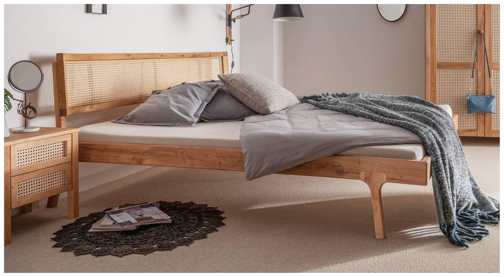 Massivholzbett FRIA Holzbett Eiche massiv mit Wiener Geflecht