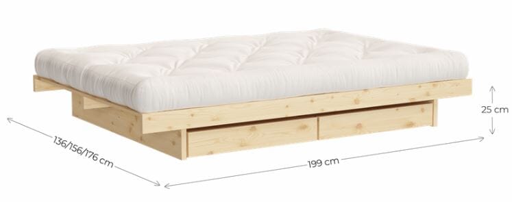 Futonbett KANSO, 90/120/140/160/180 cm, Kiefer Natur