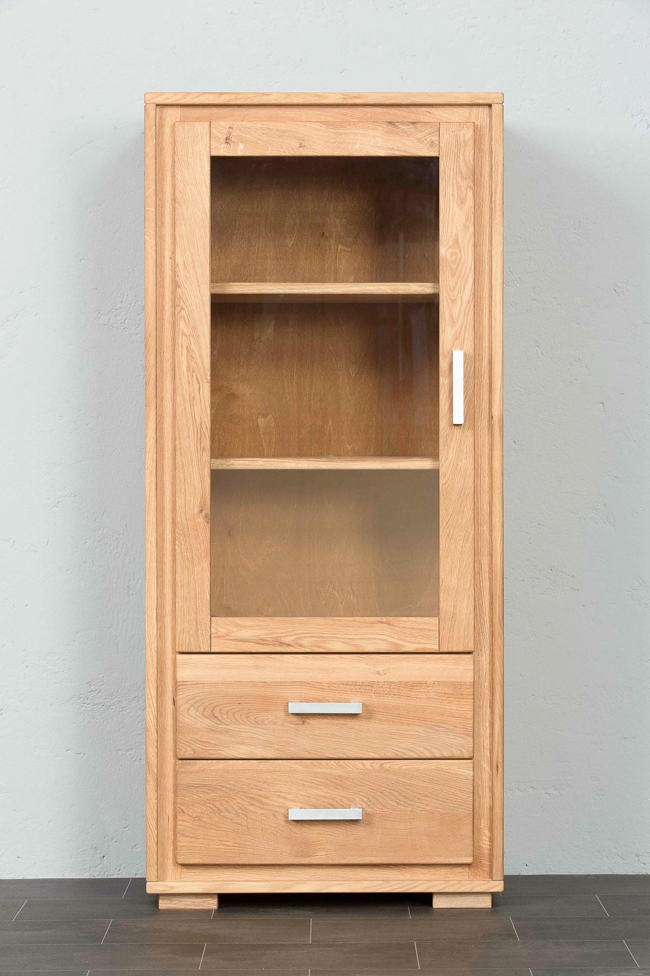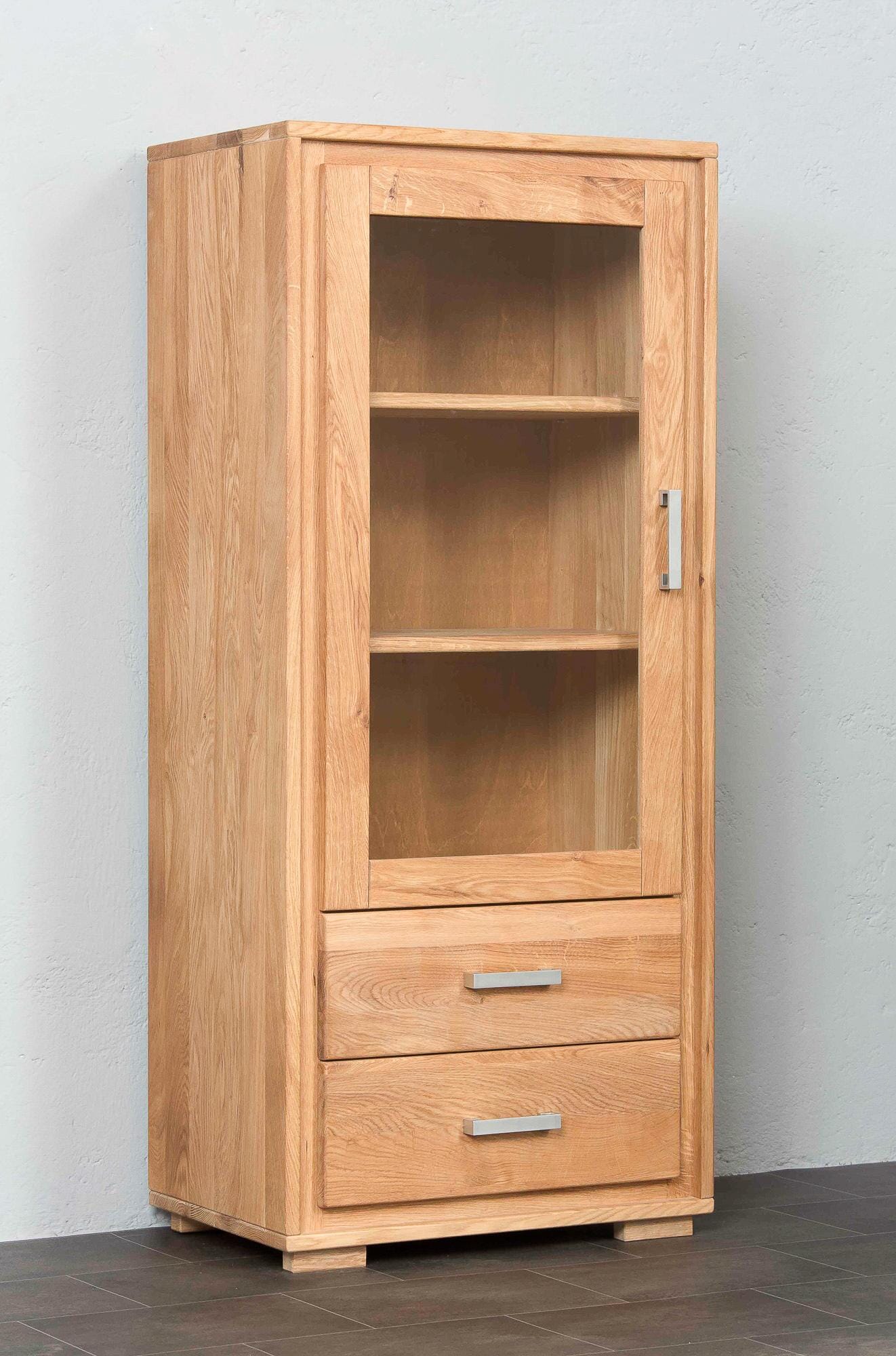 Mini Vitrine Basel 1-türig links - Wildeiche Massivholz geölt