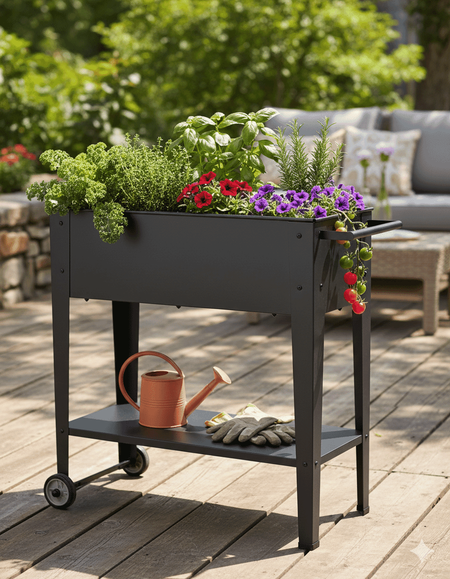 Erleben Sie die Flexibilität und Bequemlichkeit des Gärtnerns mit unserem hochwertigen mobilen Hochbeet aus Metall. Erschaffen Sie einen blühenden Garten oder einen kleinen Gemüsegarten auf Rädern und genießen Sie die Freude am Gärtnern, wo immer Sie möchten.