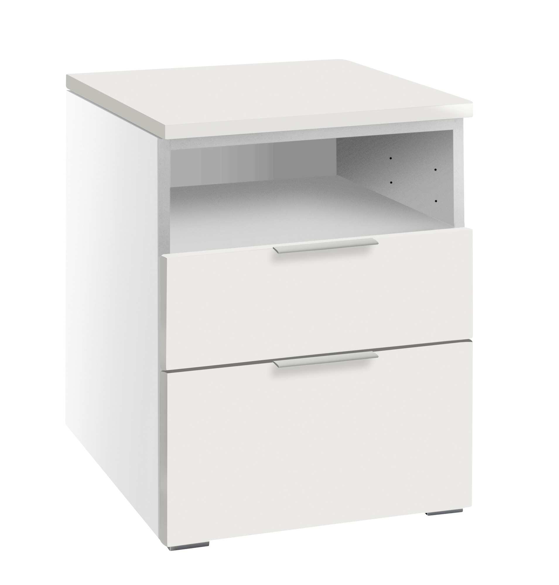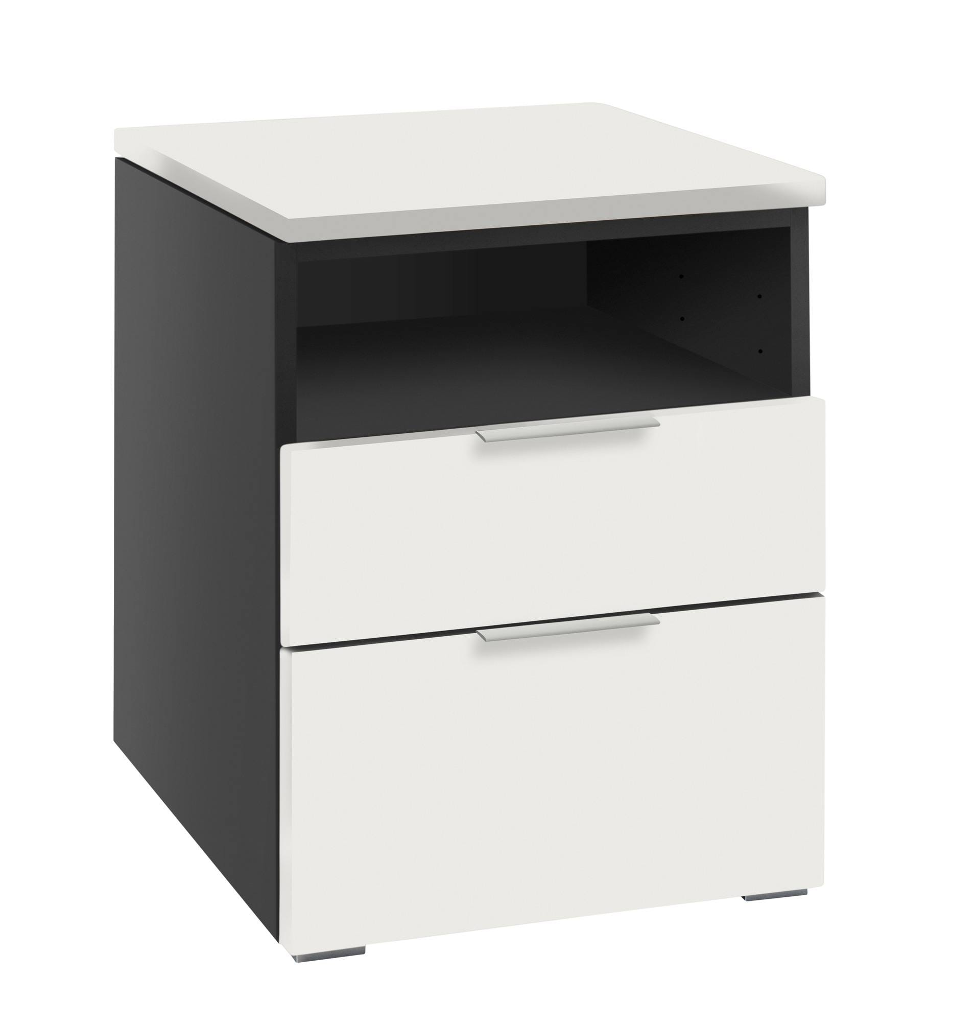 Nachtkommode DOWE, mit Ablagefach und 2 Schubladen, Weiß / Anthrazit, von Hasena