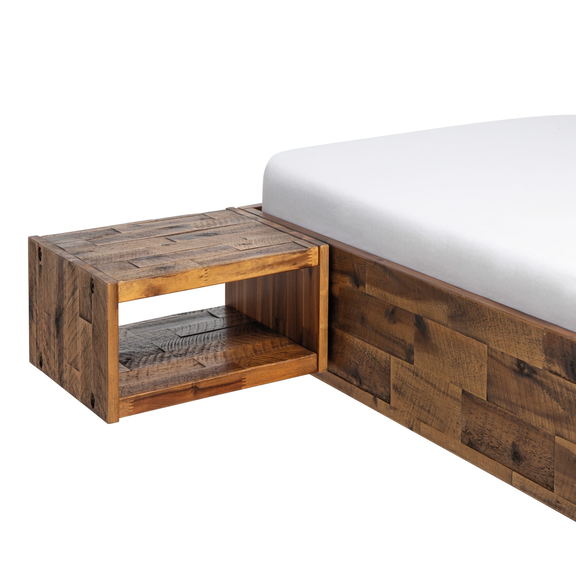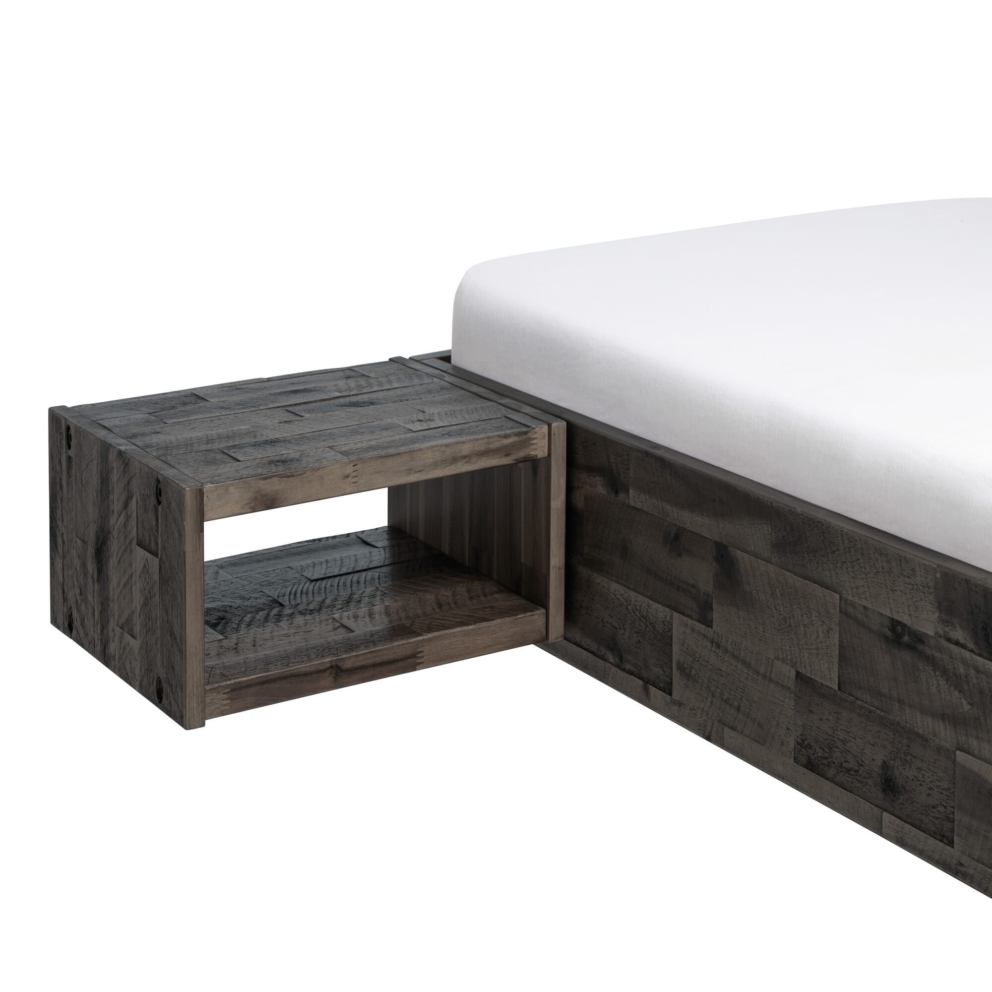 Bei Jago ist endlich Schluss mit Putzen um den Nachttisch. Perfekt schwebend verbindet er sich mit dem Bettrahmen und lässt den Boden unberührt.