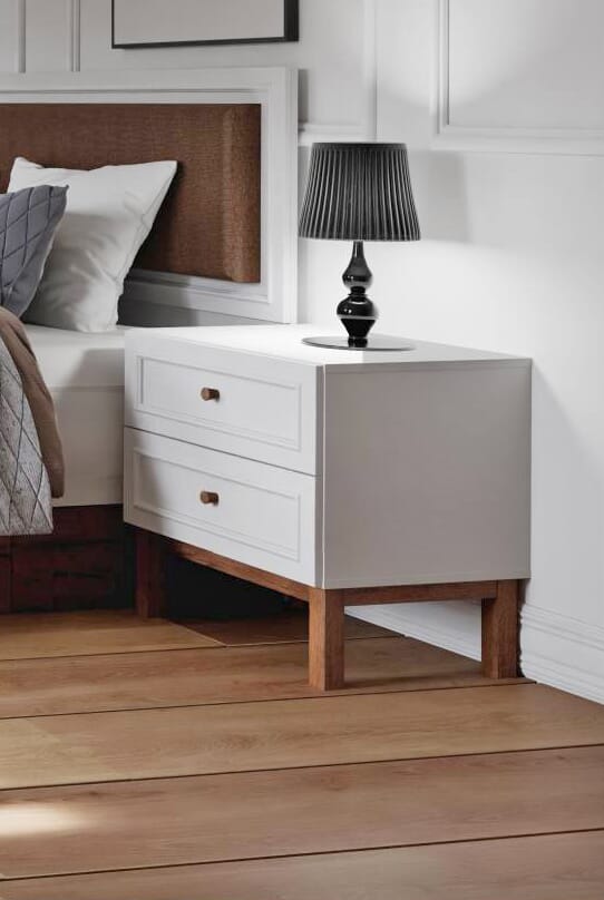 Wer sagt denn, dass nicht auch eine Nachtkommode einen tollen Auftritt haben kann? Diese kompakte Kommode aus der Serie PANKRIDGE wirkt sehr frisch und originell und nimmt auch in ihren beiden Schubladen alle wichtigen Dinge auf: das Lieblingsbuch, die Lesebrille und alle Ihre süßen Geheimnisse.