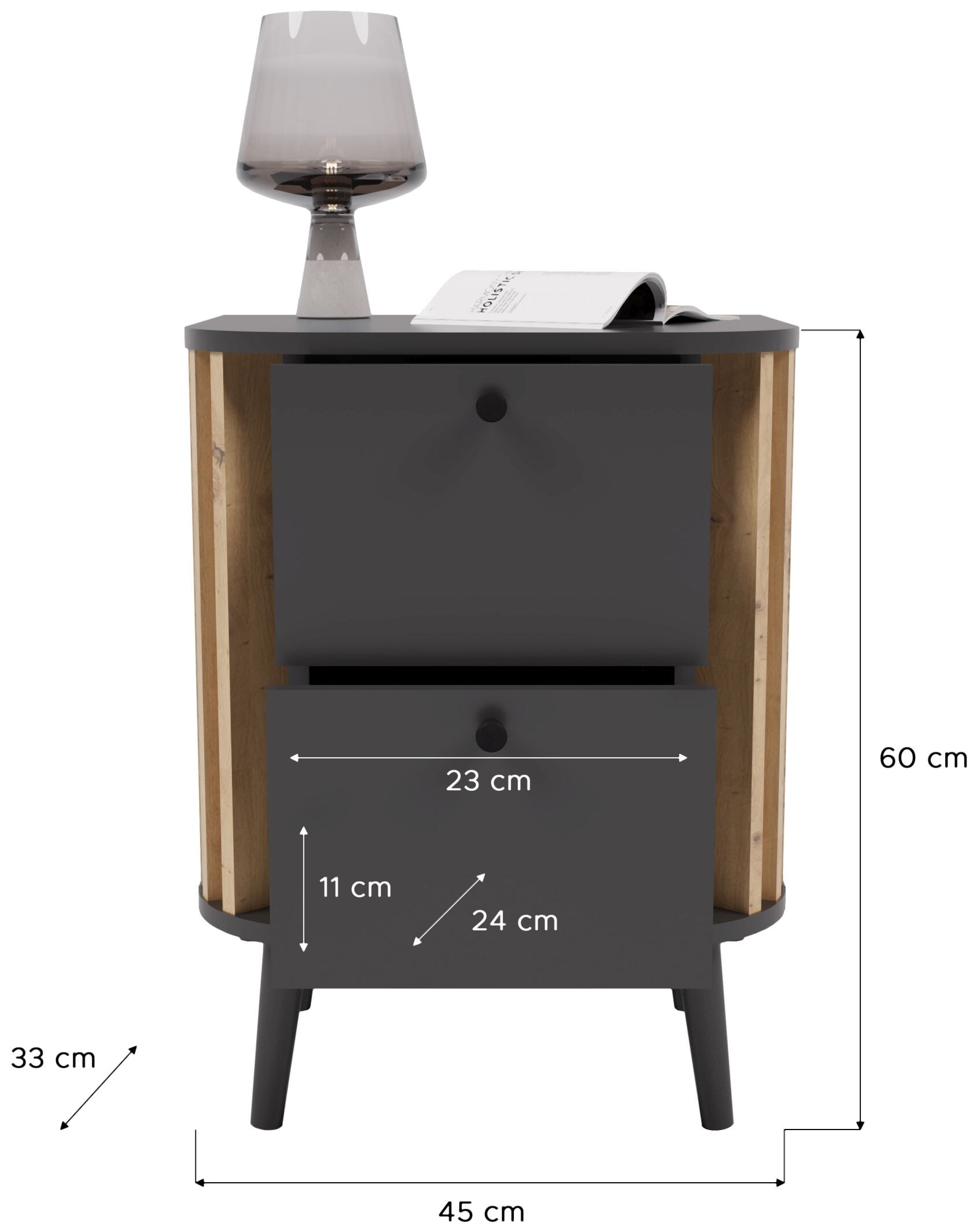 Mit den kompakten Maßen von 45x60x33 cm bietet sie nicht nur praktischen Stauraum, sondern auch eine stilvolle Ergänzung für Ihre Schlafumgebung.