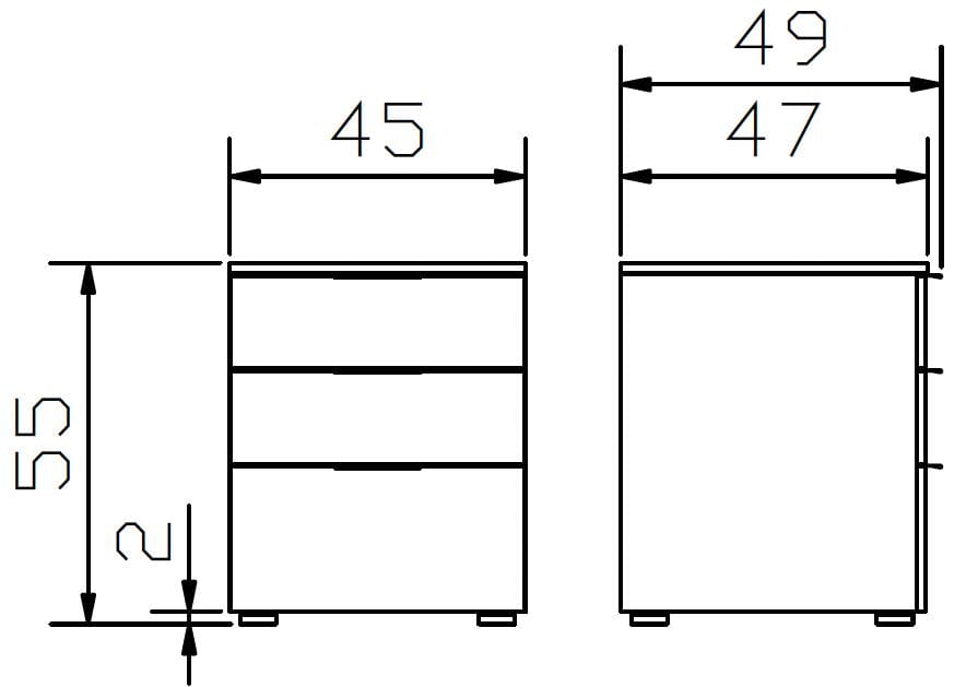 Nachtkommode TRIO, 3 Schubladen Weiß / Anthrazit, von Hasena