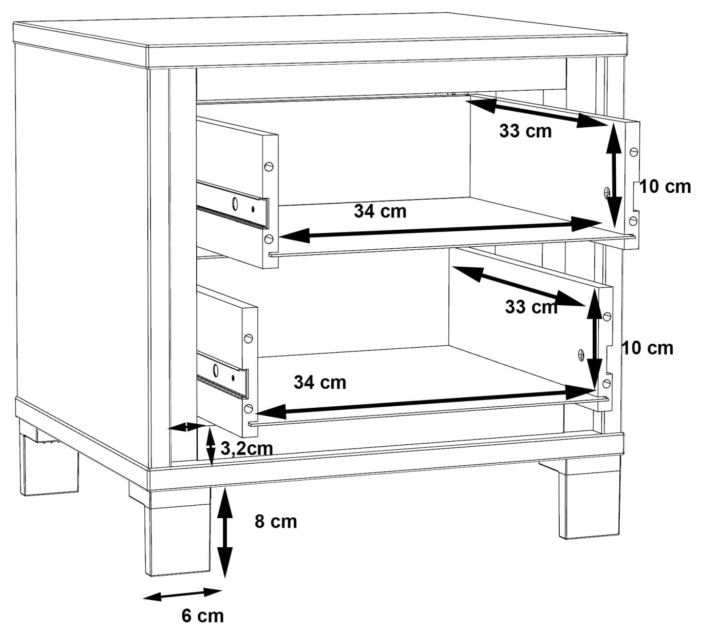 - 2 Schubladen auf Metallauszug